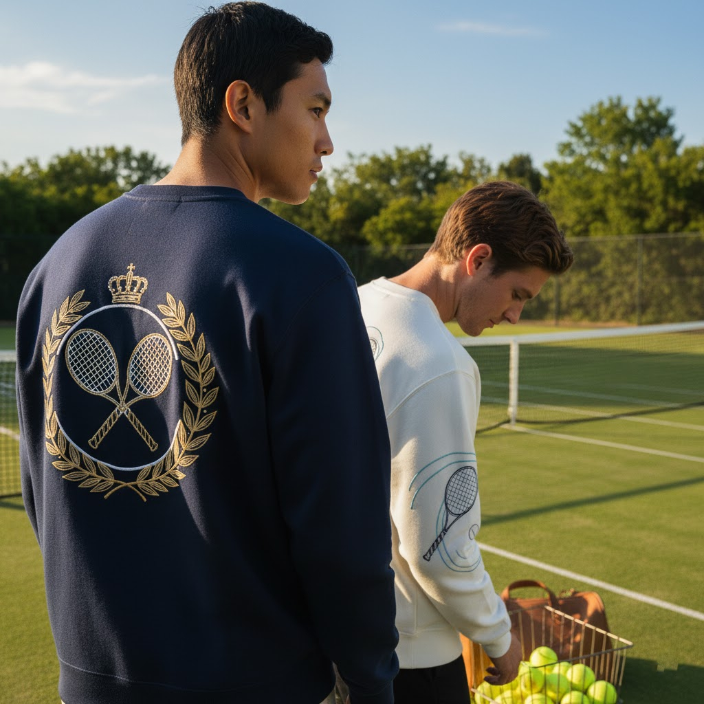 "This sweatshirt is my new favorite court-side essential. It’s incredibly warm and cozy, perfect for warming up before a match or cooling down afterward. The tennis racket embroidery is sharp, clean, and really high-quality. I've washed it several times and the stitching hasn't snagged or faded. It runs true to size and looks great with joggers or jeans. A must-have for any tennis player."