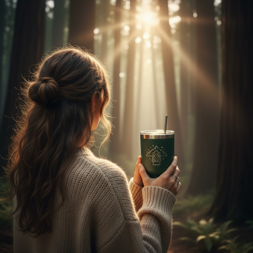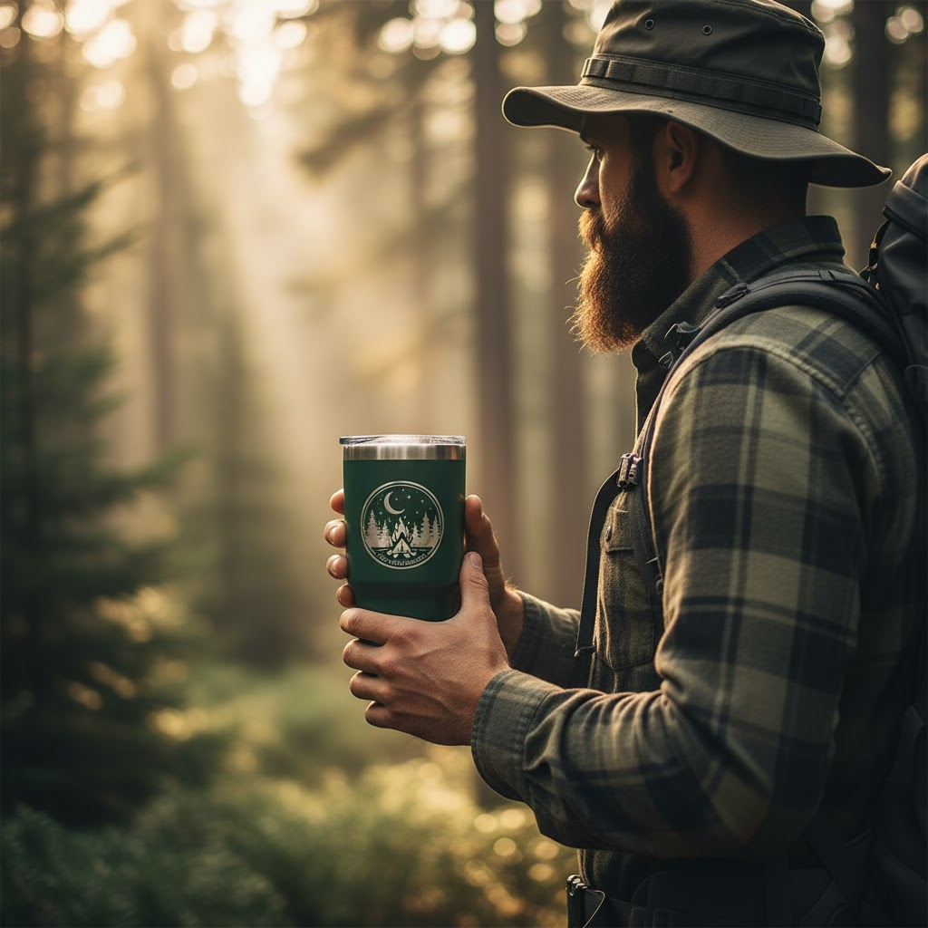 "Fantastic tumbler! I took this on a weekend camping trip. It kept my coffee hot for hours in the morning and my water icy cold all afternoon. The little embroidered tree line design is a beautiful, subtle touch that really sets it apart from plain tumblers. It’s durable, easy to clean, and the lid seals perfectly. Great quality item that's worth the price."