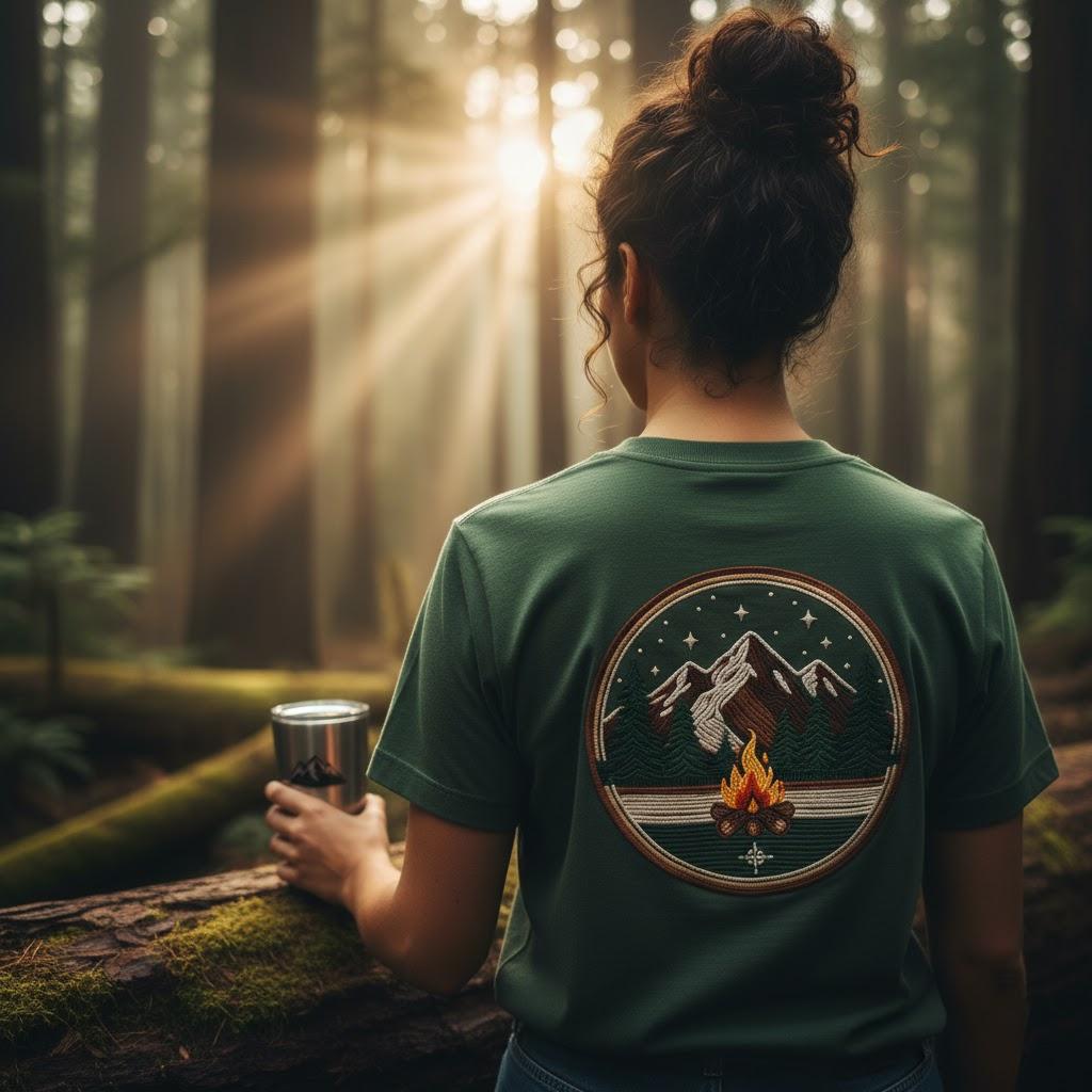"I absolutely love this tee! The fabric is soft, but the real star is the embroidery. The tiny campfire and mountain design is so detailed and vibrant—it doesn't look cheap or flimsy at all. I wore it on a recent hiking trip and it was comfortable all day. It’s a great way to show off my love for the outdoors without being overly flashy. Highly recommend for any camper!"