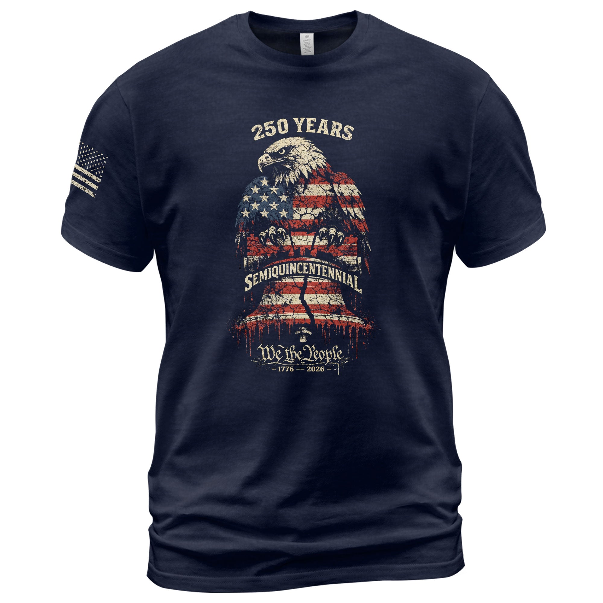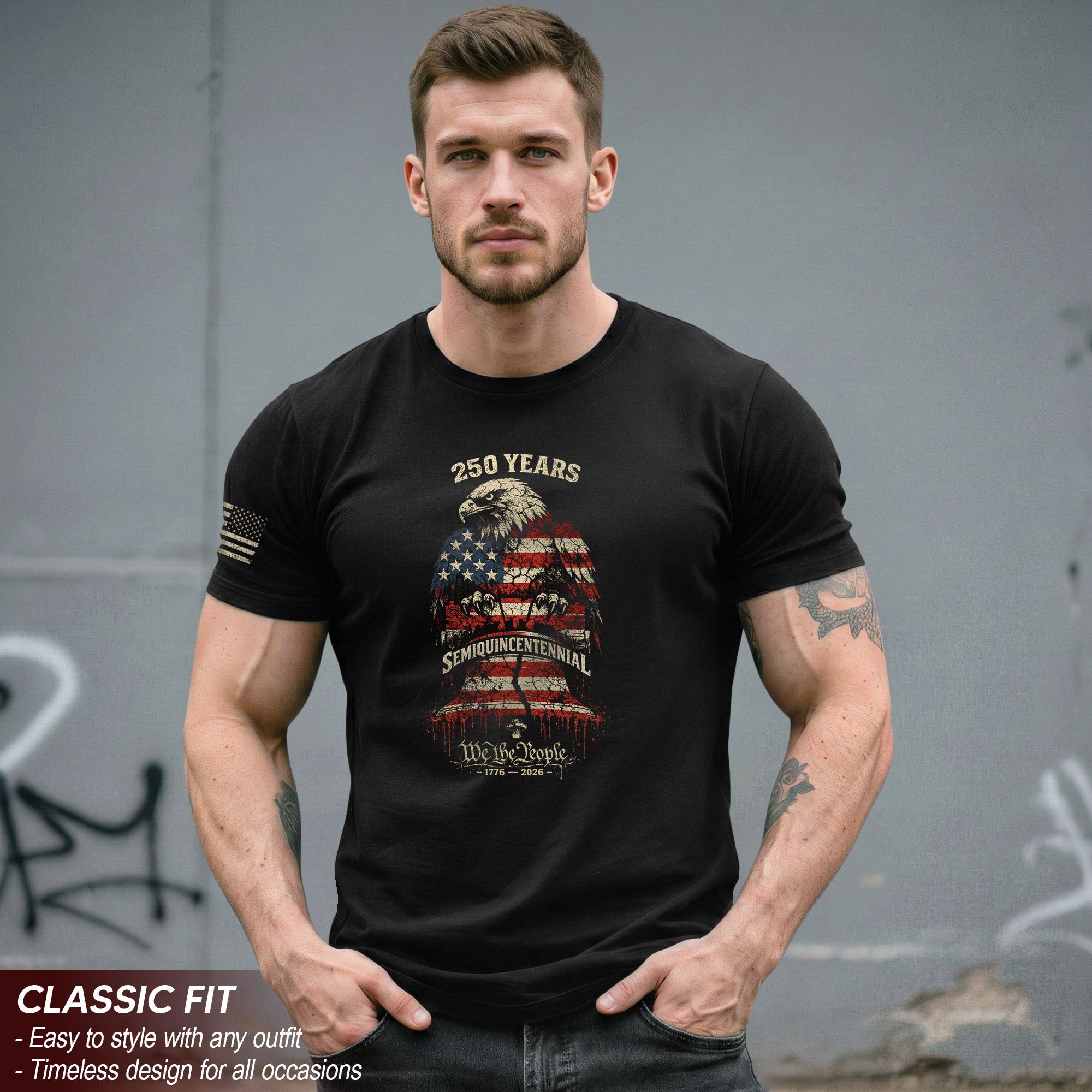 Celebrate America’s 250th anniversary of independence with this patriotic men’s T-shirt. Featuring the iconic Liberty Bell, a majestic eagle, and the timeless ‘We The People’ motto, this tee honors the founding ideals that shaped the nation. Crafted from soft, breathable cotton for all-day comfort, it’s perfect for history enthusiasts, veterans, Fourth of July events, barbecues, or everyday wear expressing national pride. Available in multiple sizes for a classic fit. Machine washable and durable for long-lasting wear.