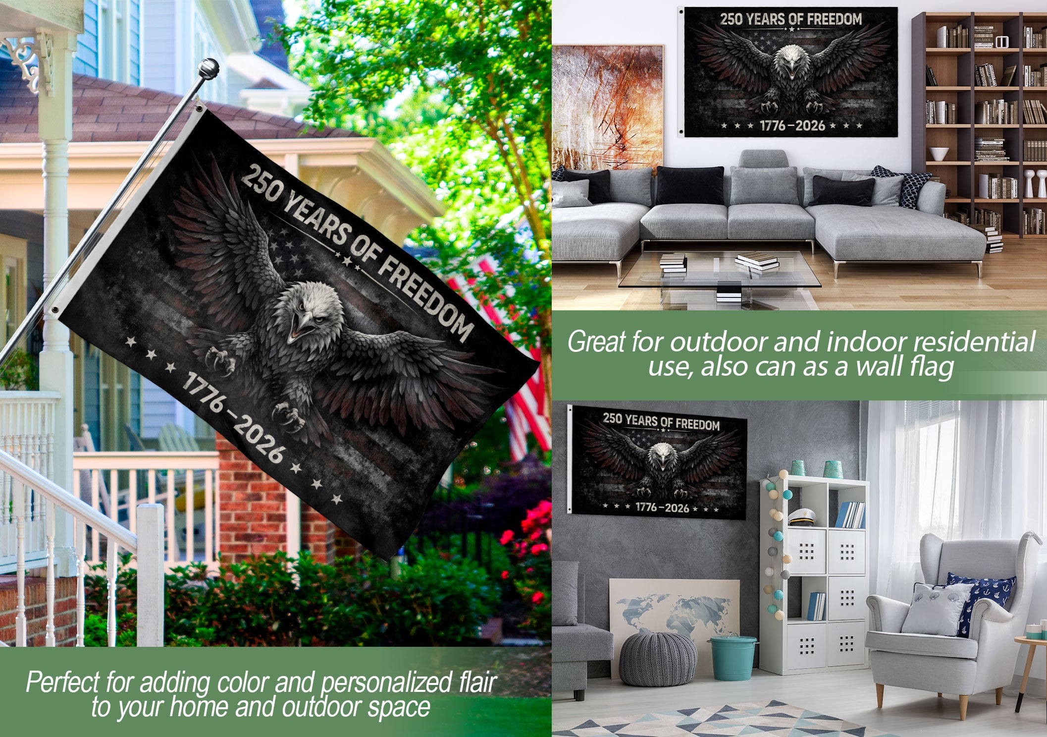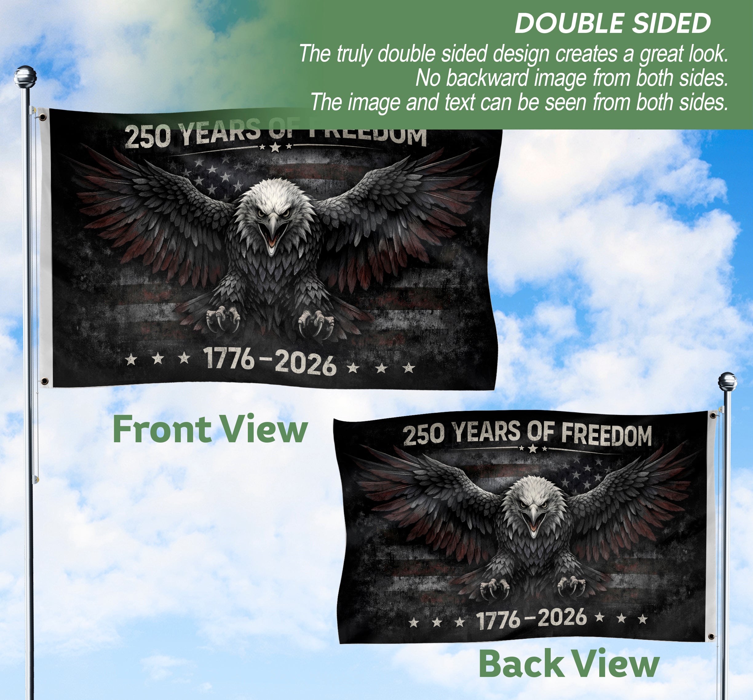 Celebrate 250 years of American independence with this striking patriotic garden flag featuring the iconic We The People design and 1776-2026 timeline. Crafted for durability, this bold yard decoration honors unity, heritage, and freedom. Ideal for porches, lawns, gardens, and patriotic events like Fourth of July, Memorial Day, or the 250th anniversary. Double-sided printing ensures visibility from all angles, weather-resistant fabric withstands outdoor conditions. Easy to set up with a standard garden flag stand (sold separately). Show your American pride with this limited-edition tribute to the nation’s enduring spirit.