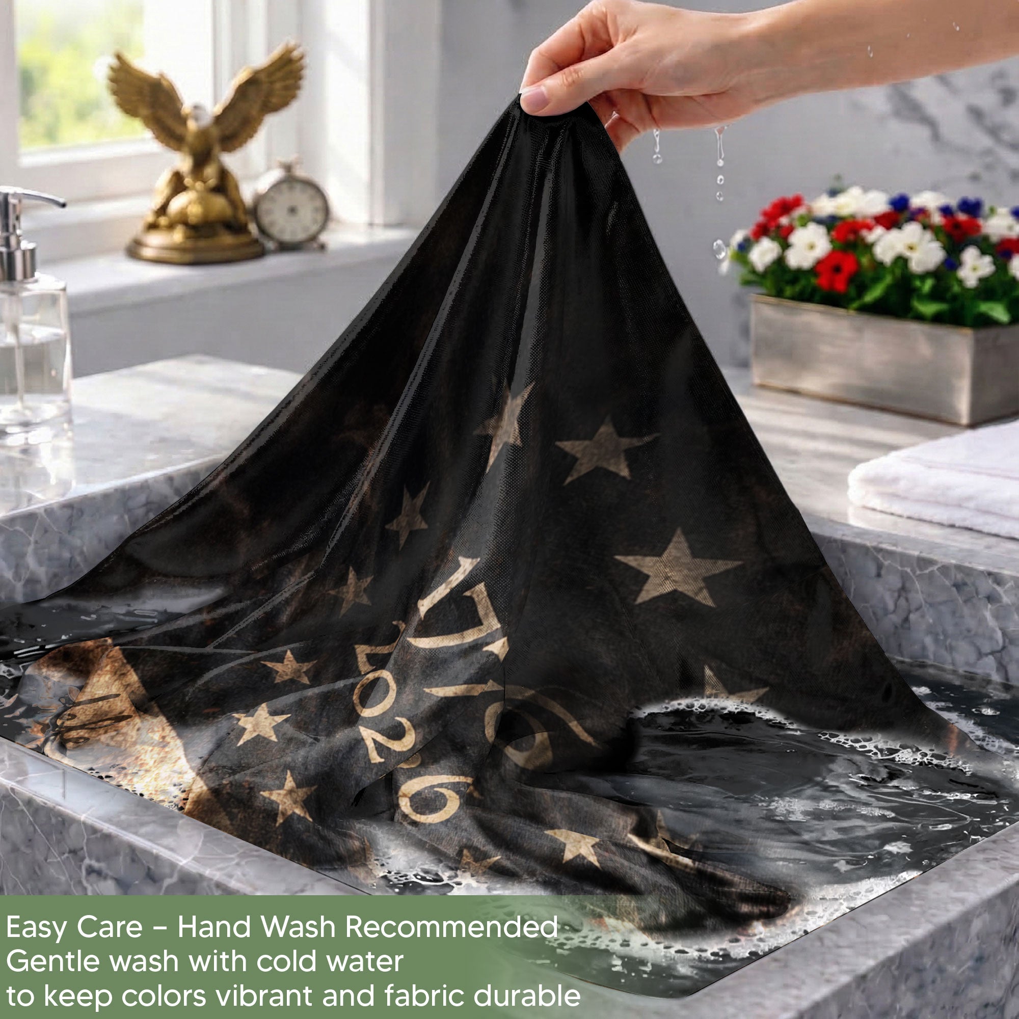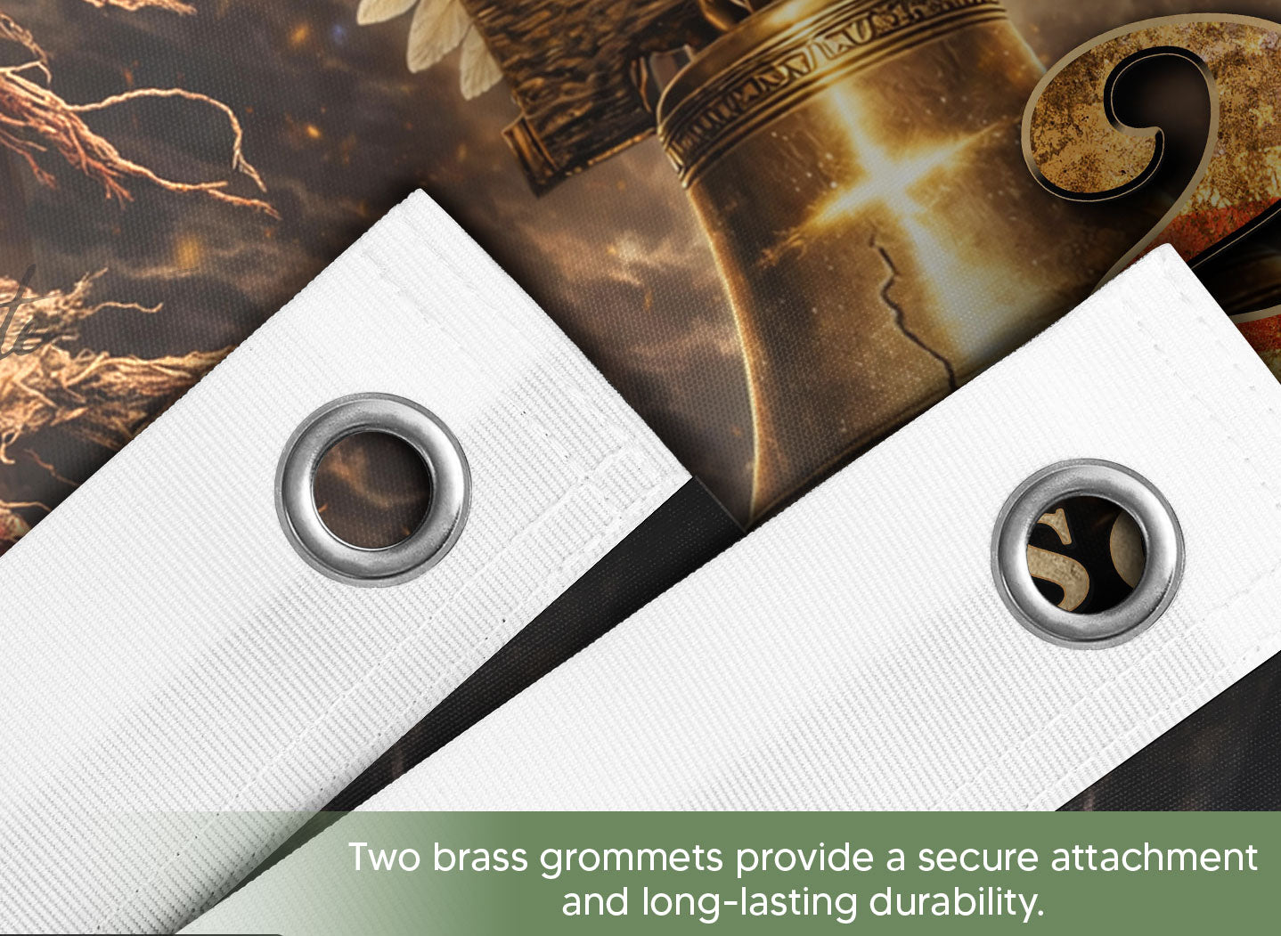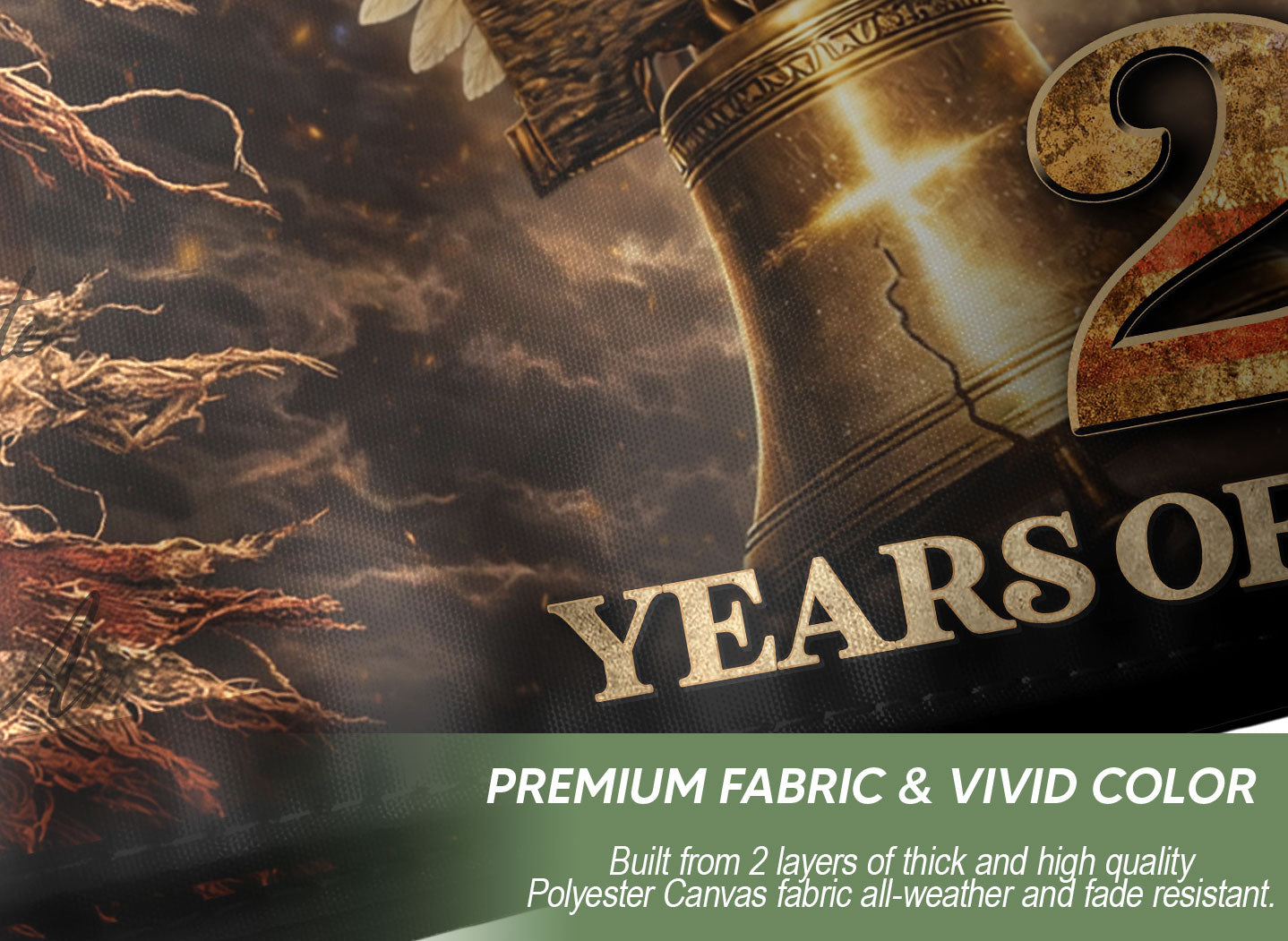 Celebrate 250 years of American freedom with this striking house flag featuring a majestic bald eagle perched on the Liberty Bell. Set against a weathered stars-and-stripes American flag backdrop and a poignant faith-inspired image, this patriotic decor honors the journey from 1776 to 2026. Perfect for displaying national pride on your porch, home, or garden. Crafted for durability and vibrant colors that withstand outdoor conditions, it’s an iconic symbol of heritage, liberty, and Christian values. Ideal for Independence Day, anniversaries, or everyday patriotism.