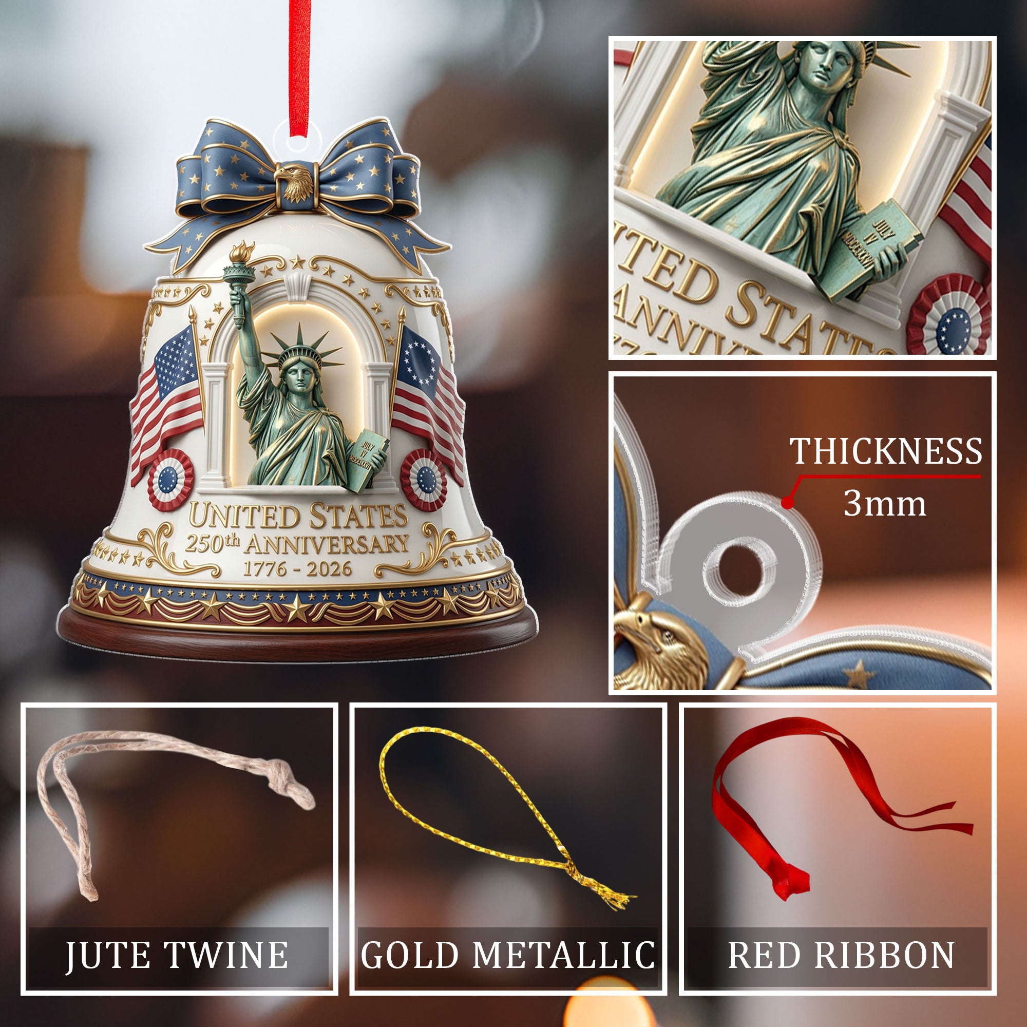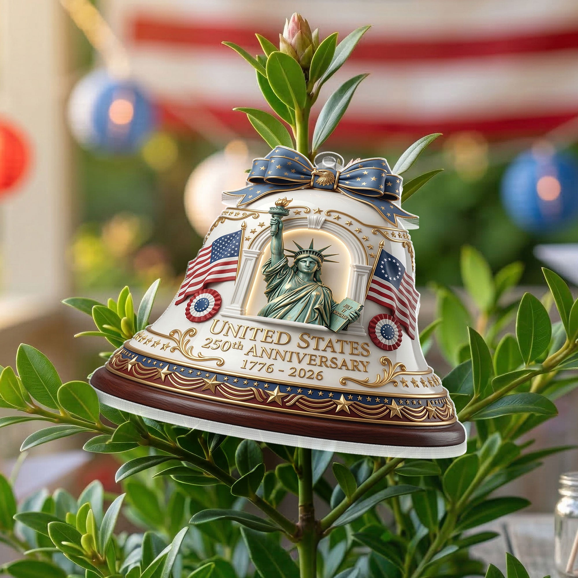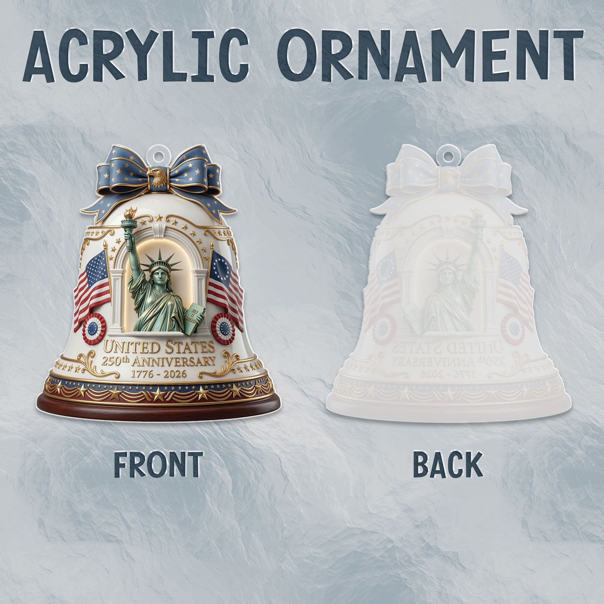 Celebrate America’s 250th anniversary with this commemorative acrylic ornament featuring the iconic Statue of Liberty design. Crafted from durable, high-quality acrylic, this ornament captures the timeless symbol of freedom and democracy in stunning detail. Perfect for hanging on your Christmas tree, displaying in a patriotic collection, or gifting to history buffs, veterans, or anyone who loves U.S. heritage. Lightweight and shatter-resistant, it adds a touch of historical significance to holiday decor or year-round displays. Measures approximately 3-4 inches for versatile use. Ideal for 250th anniversary celebrations, Independence Day, or everyday patriotism.