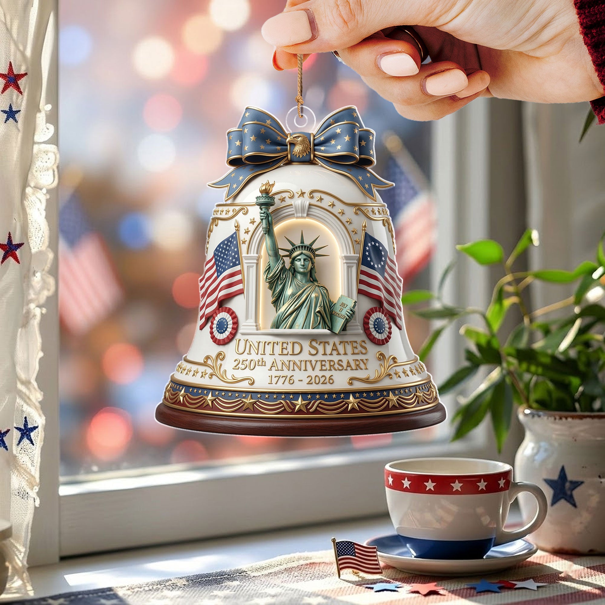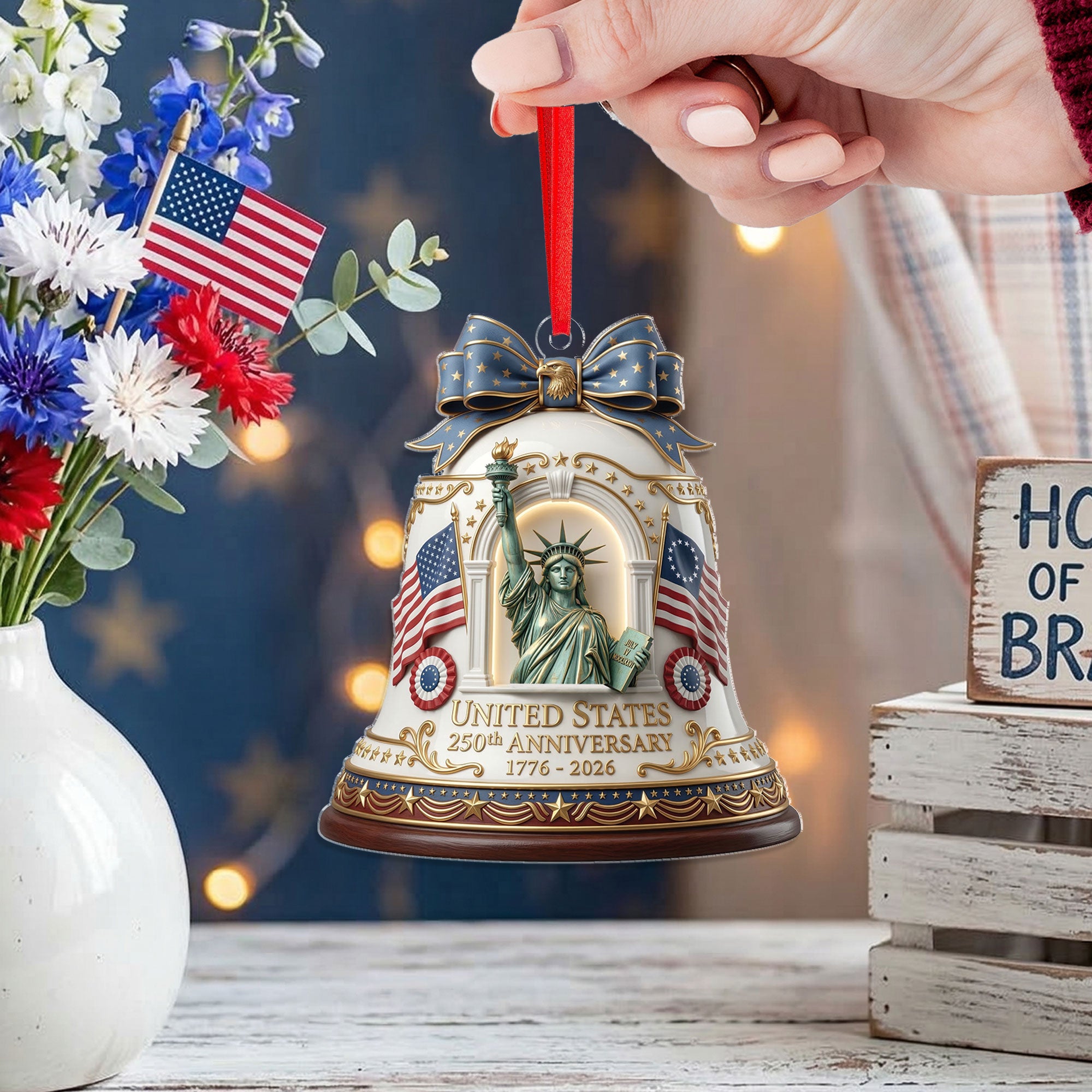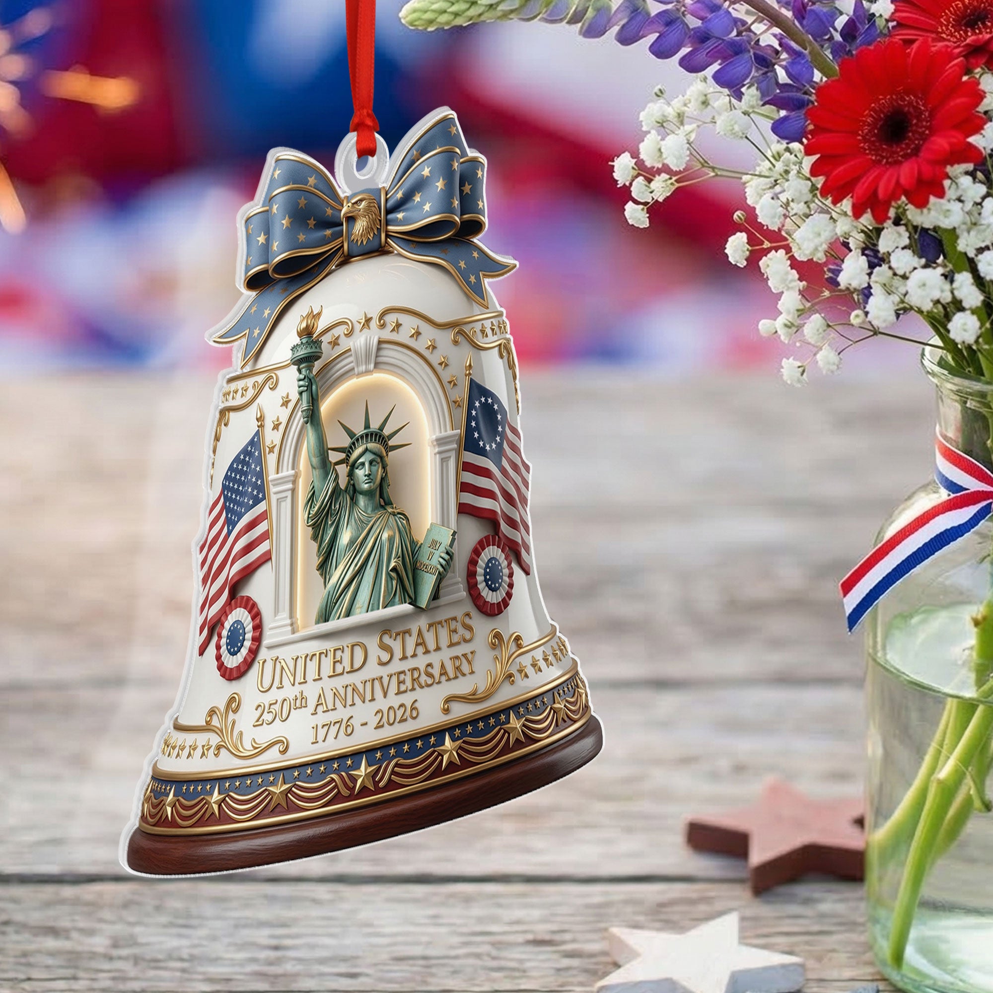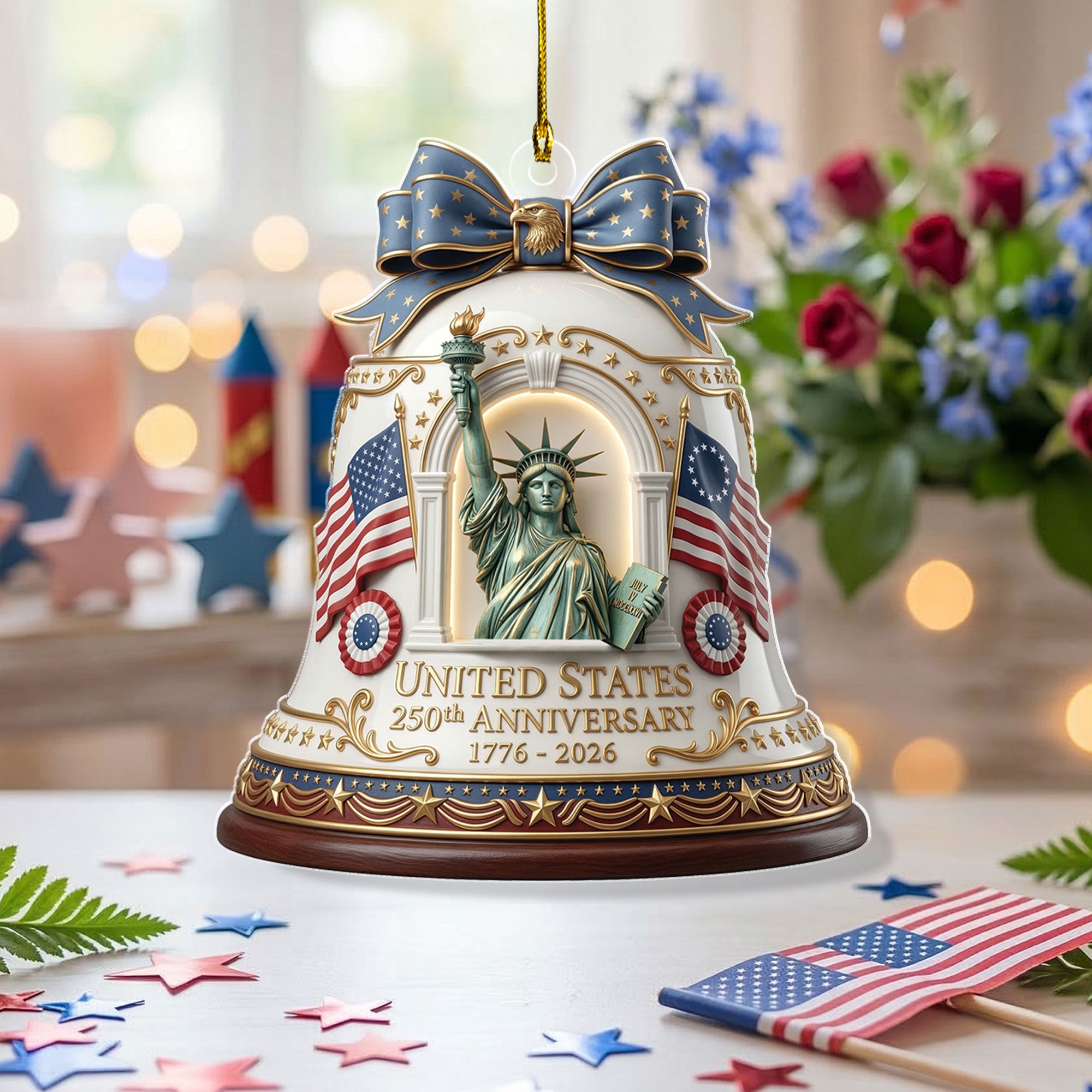 Celebrate America’s 250th anniversary with this commemorative acrylic ornament featuring the iconic Statue of Liberty design. Crafted from durable, high-quality acrylic, this ornament captures the timeless symbol of freedom and democracy in stunning detail. Perfect for hanging on your Christmas tree, displaying in a patriotic collection, or gifting to history buffs, veterans, or anyone who loves U.S. heritage. Lightweight and shatter-resistant, it adds a touch of historical significance to holiday decor or year-round displays. Measures approximately 3-4 inches for versatile use. Ideal for 250th anniversary celebrations, Independence Day, or everyday patriotism.