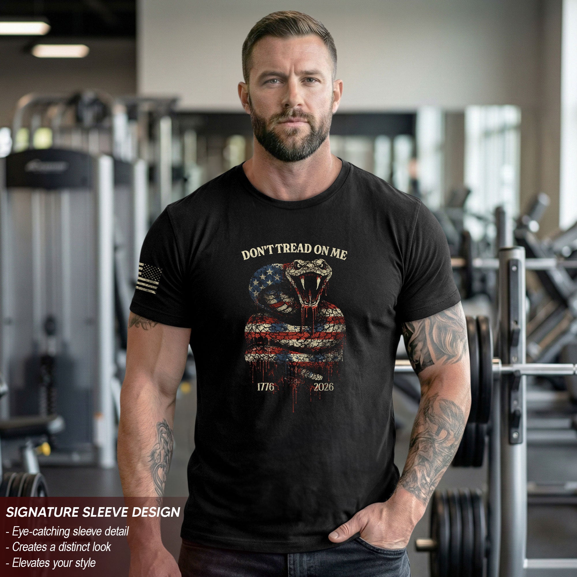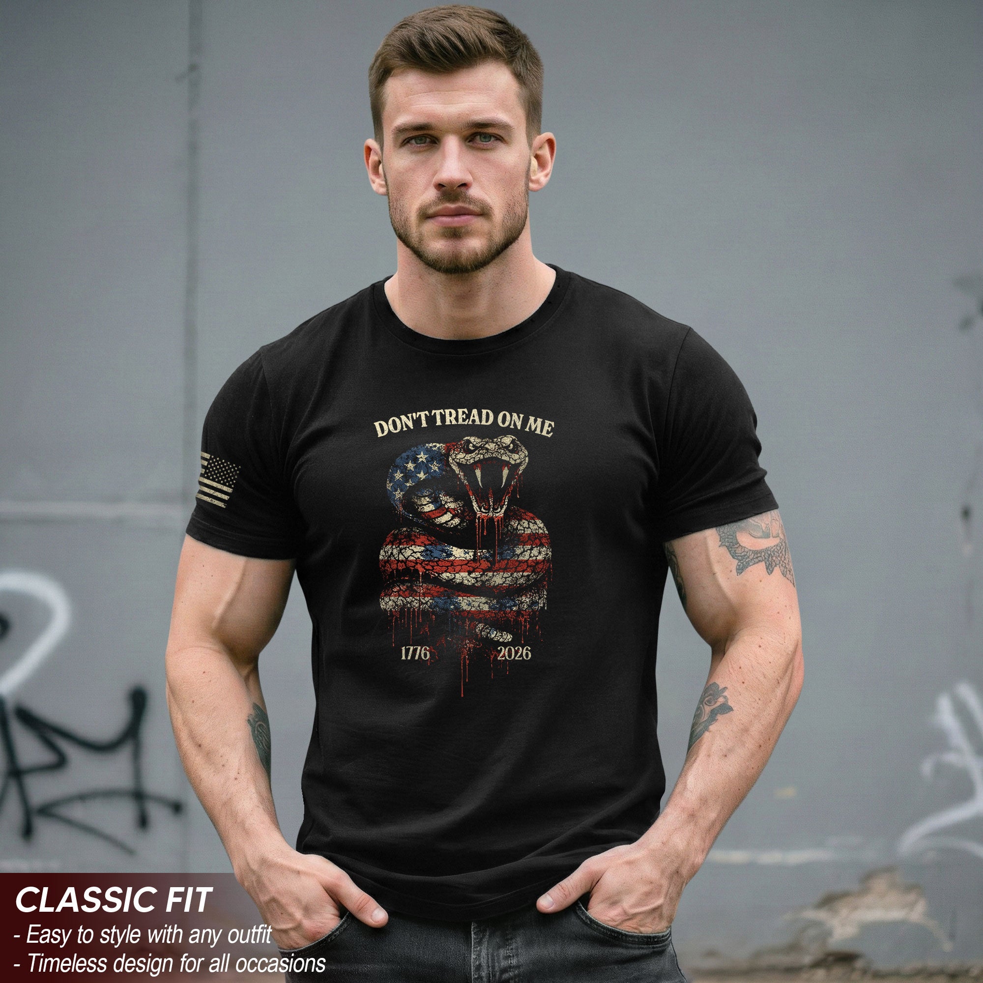Celebrate America’s 250th anniversary from 1776 to 2026 with this patriotic T-shirt featuring the iconic Don’t Tread On Me Gadsden flag design. The coiled snake and bold liberty message capture the revolutionary spirit of independence and determination that has defined the United States for 250 years. Crafted from soft, breathable cotton for all-day comfort, this tee is perfect for history enthusiasts, patriots, Fourth of July events, Memorial Day barbecues, or everyday wear showing your American pride. Available in multiple sizes, it’s a timeless piece blending historical symbolism with modern style. Wear it to honor the founding principles of liberty and freedom.