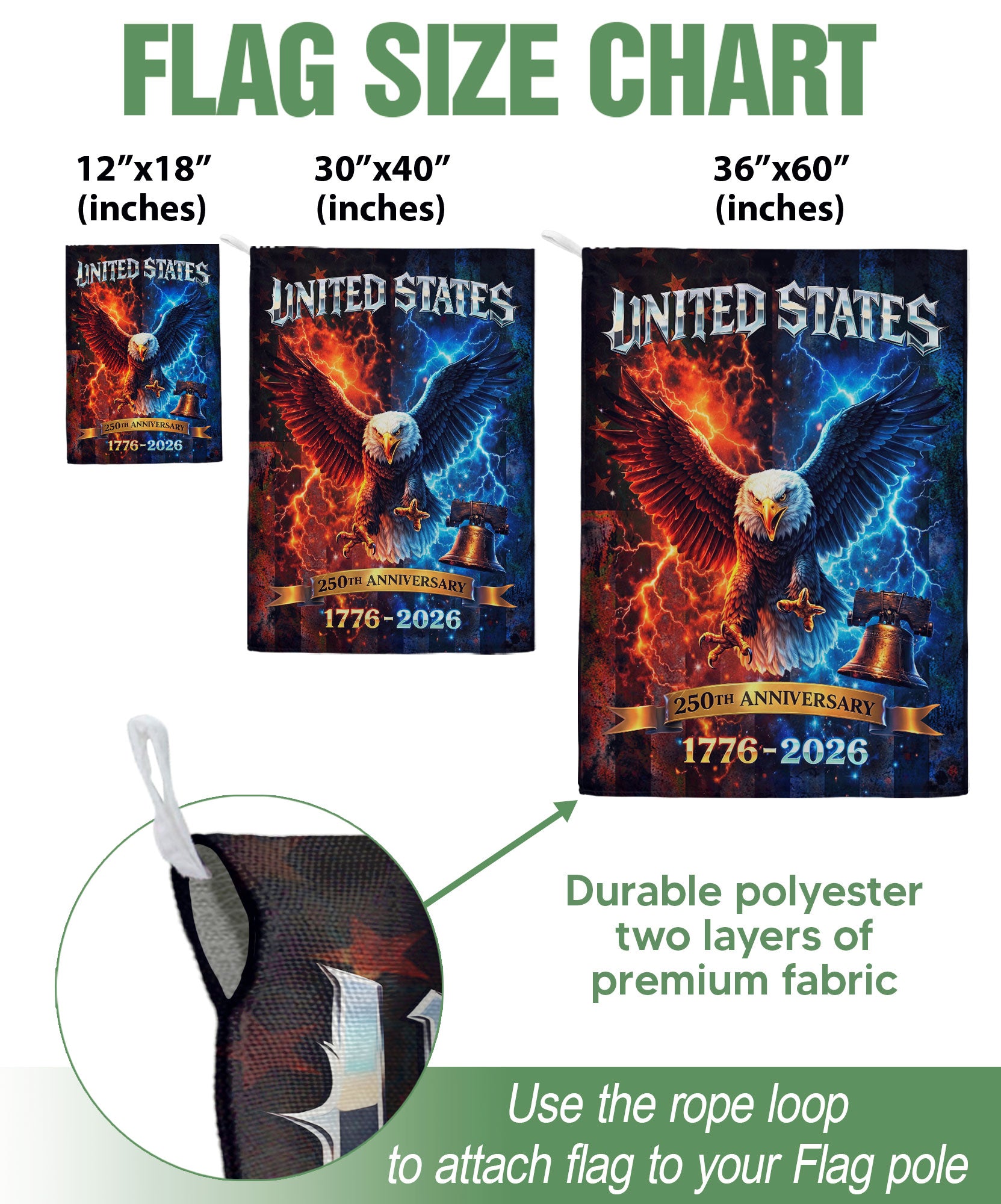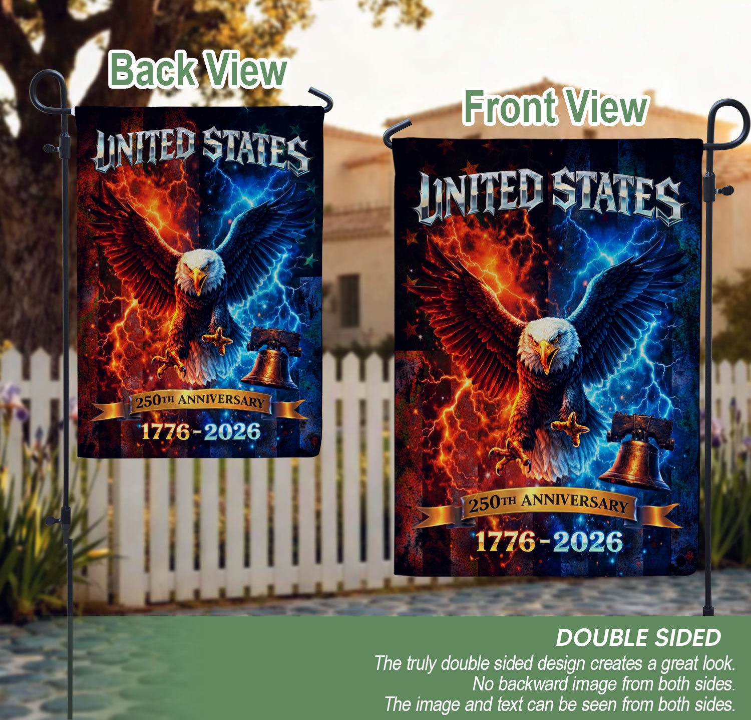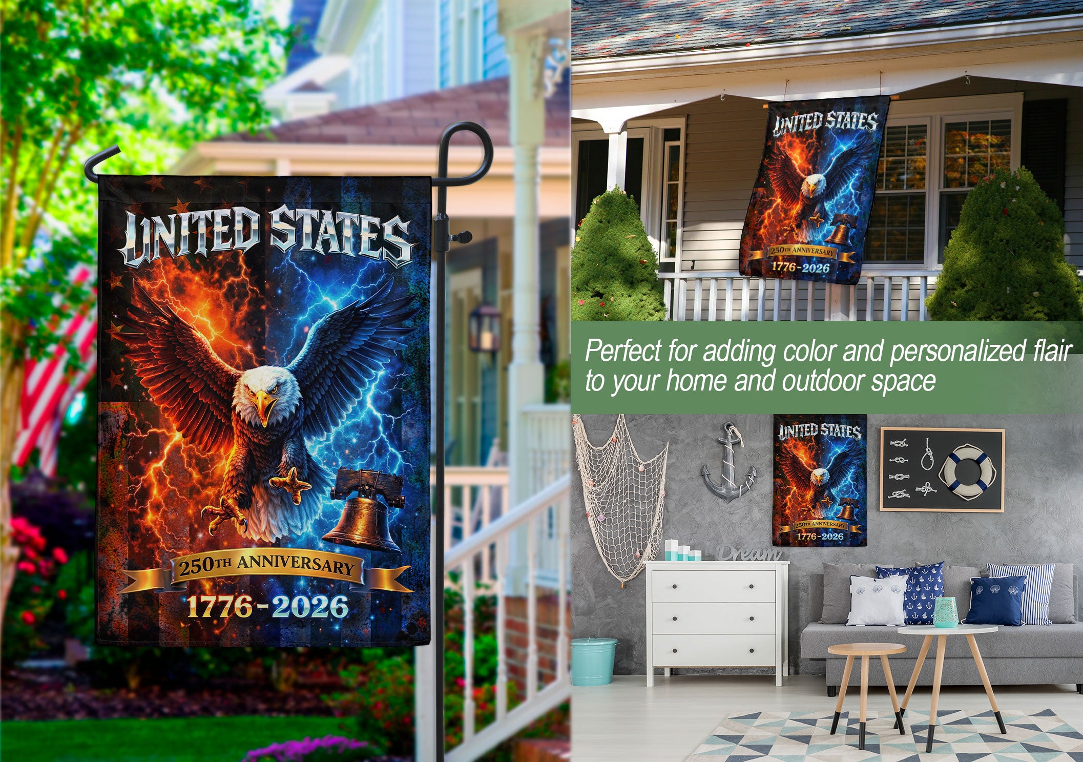 Celebrate the United States’ 250th anniversary with this double-sided garden flag featuring the iconic Statue of Liberty and majestic eagle. Marking the period from 1776 to 2026, it honors 250 years of American independence, strength, and resilience. Ideal for outdoor display in yards, porches, or gardens, this durable flag adds bold patriotic spirit to any space. Designed for weather resistance, it maintains vibrant colors and sharp designs on both sides, perfect for national holidays like Independence Day, Memorial Day, or everyday displays of American pride. Crafted from high-quality, fade-resistant polyester fabric, it’s lightweight yet sturdy, ensuring long-lasting performance in various weather conditions. Easy to install with a standard garden flag bracket (not included). Dimensions: 12.5 x 18 inches. Bring history and liberty to life with this commemorative outdoor decor piece.