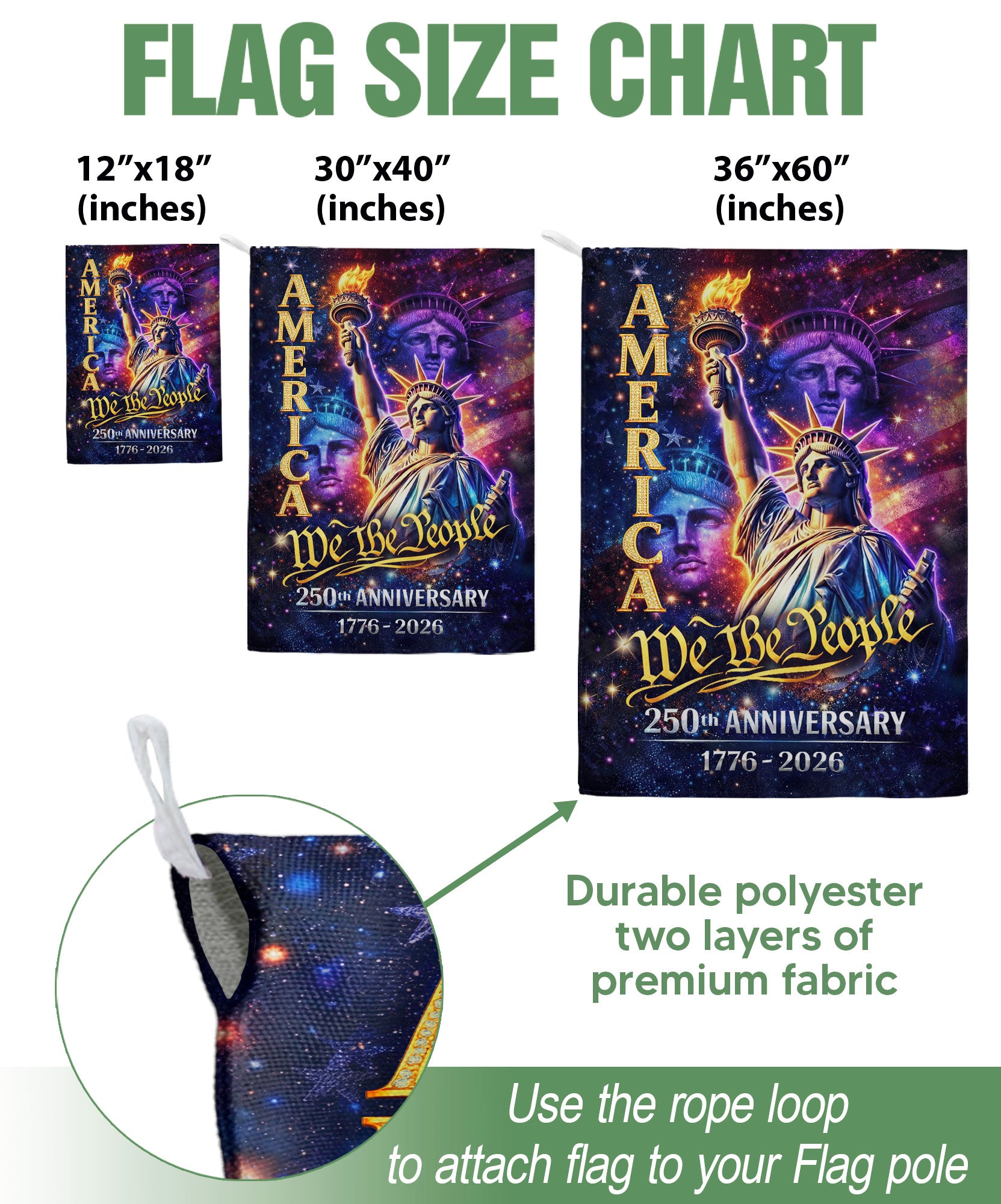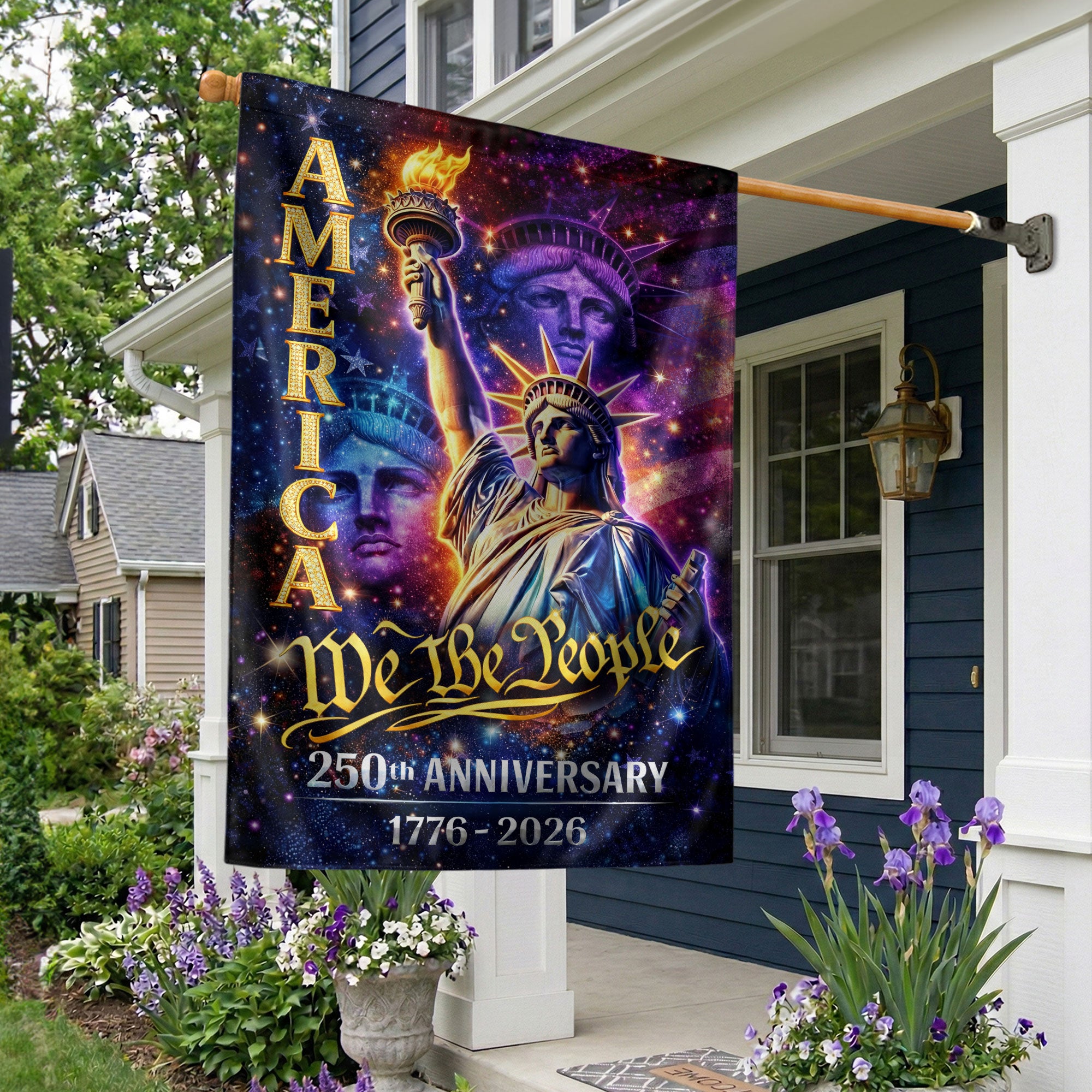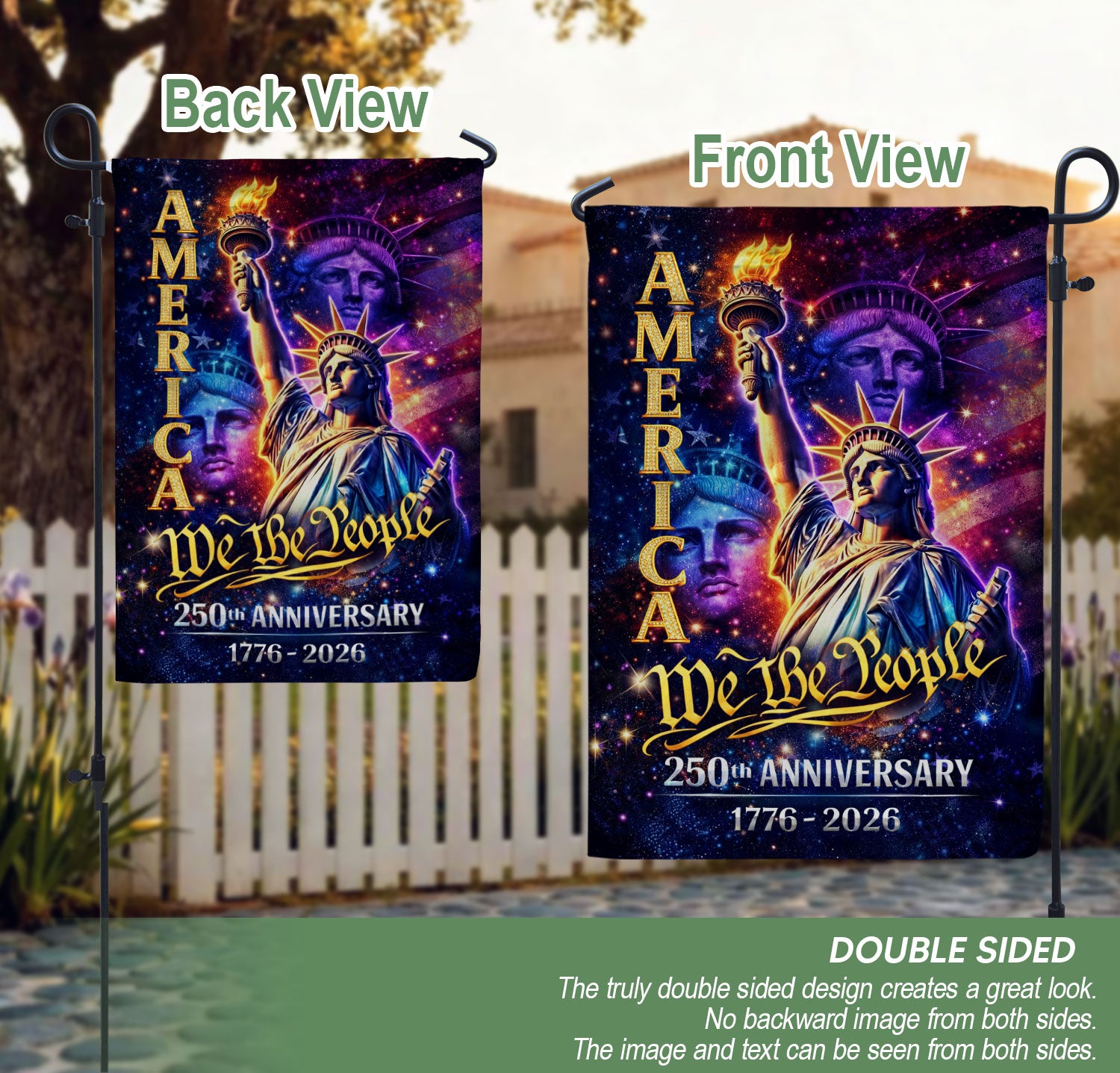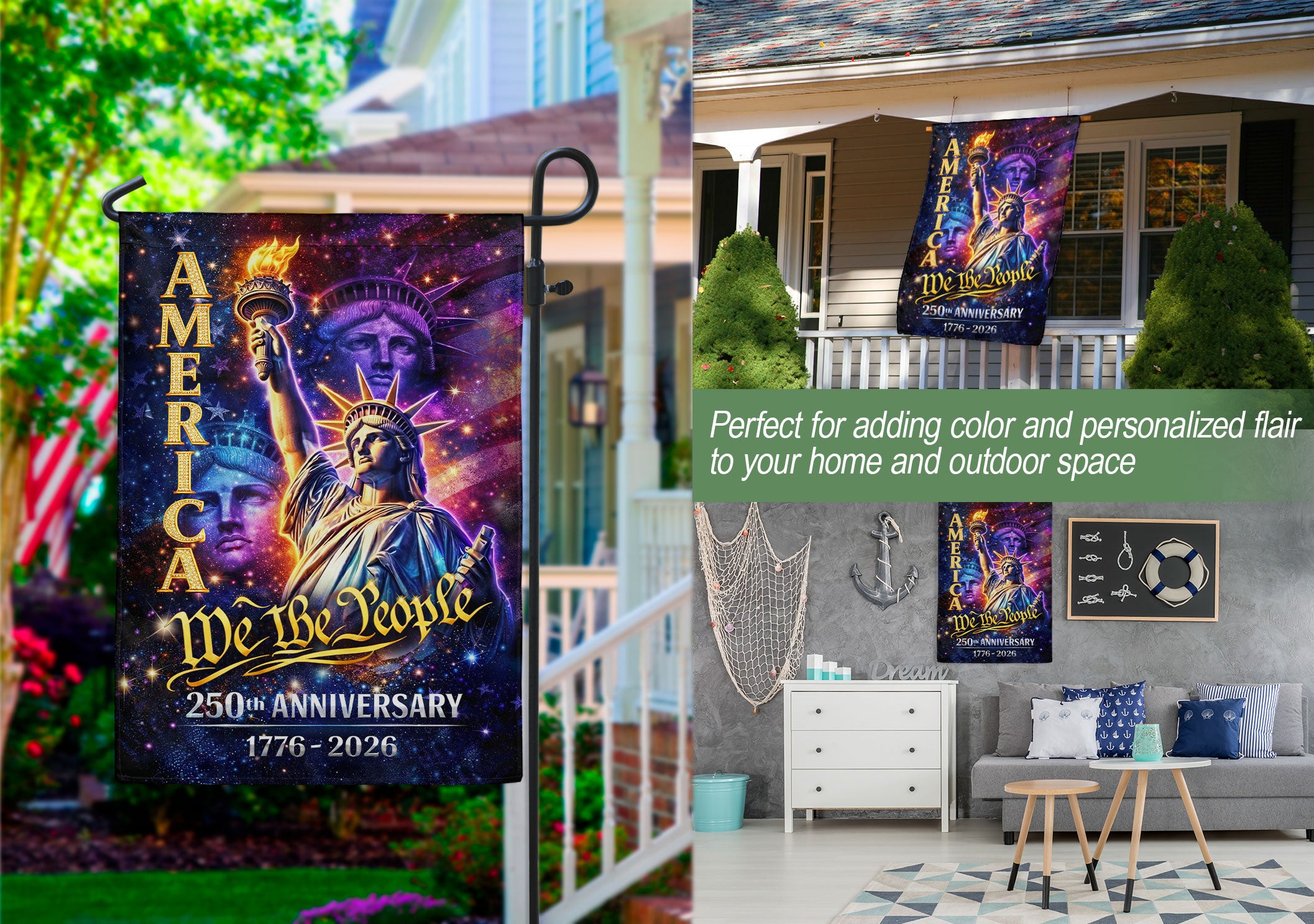 Celebrate the United States’ 250th anniversary with this premium double-sided garden flag featuring the iconic Statue of Liberty and bold ‘We The People’ design. Marking the historic span from 1776 to 2026, it symbolizes 250 years of American freedom, unity, and national pride. Perfect for displaying on garden stakes, porches, mailboxes, or patios to showcase your patriotic spirit year-round.