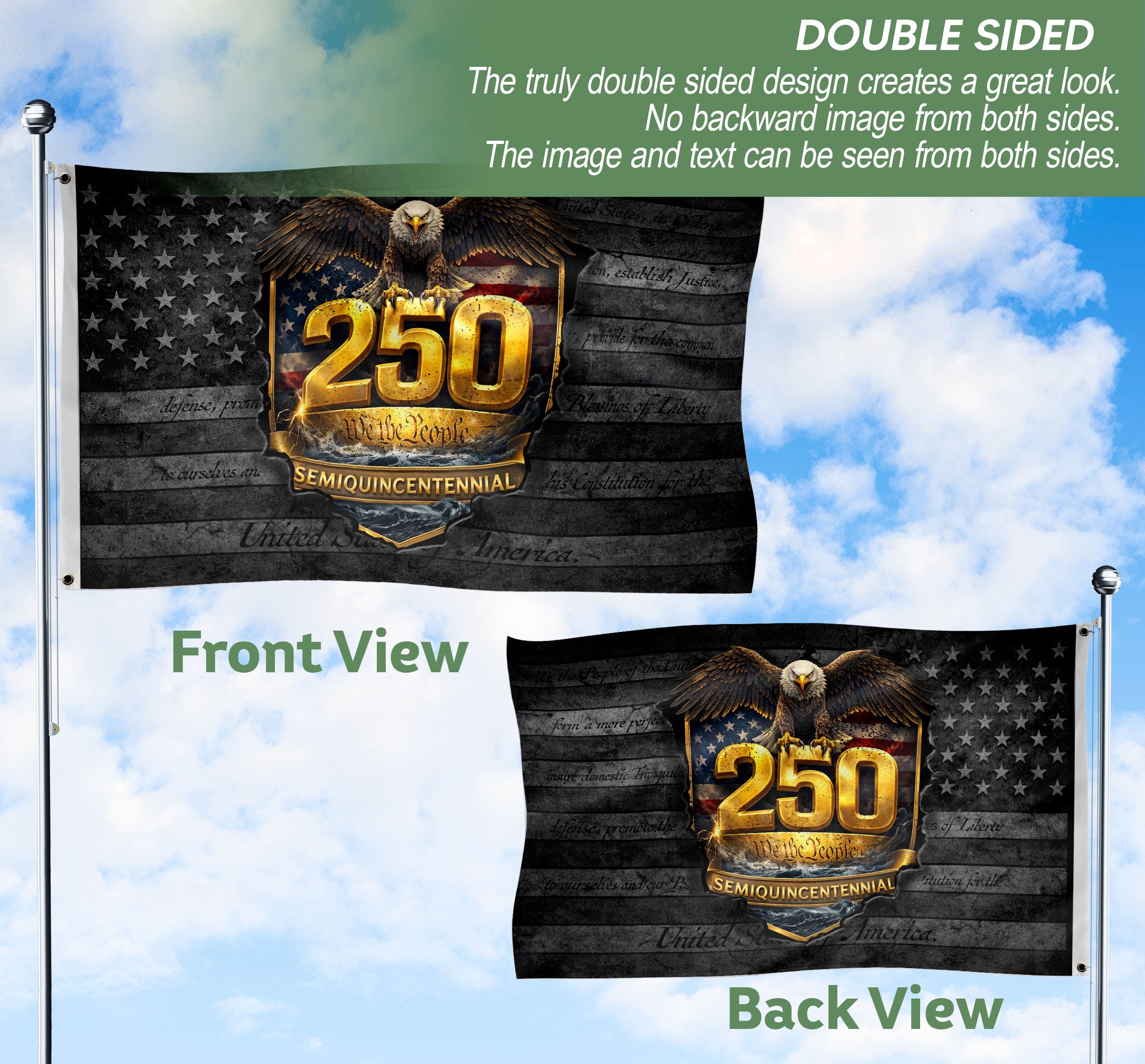 Celebrate the United States’ 250th anniversary from 1776 to 2026 with this striking house flag featuring a majestic bald eagle and the iconic ‘We The People’ design. This patriotic flag honors two and a half centuries of liberty, unity, and the enduring American spirit. Perfect for displaying on your porch, garden flagpole, or home exterior during Independence Day celebrations, historical commemorations, or everyday pride. Crafted from durable, weather-resistant polyester fabric, it withstands wind, rain, and sun exposure while maintaining long-lasting color vibrancy. Double-sided printing ensures bold graphics are visible from both sides, making it ideal for outdoor visibility. Easy to attach with a standard flag bracket or sleeve. Standard house flag size fits most garden and porch poles for versatile use. Ideal for homeowners, history enthusiasts, veterans, and anyone cherishing American heritage and patriotism.