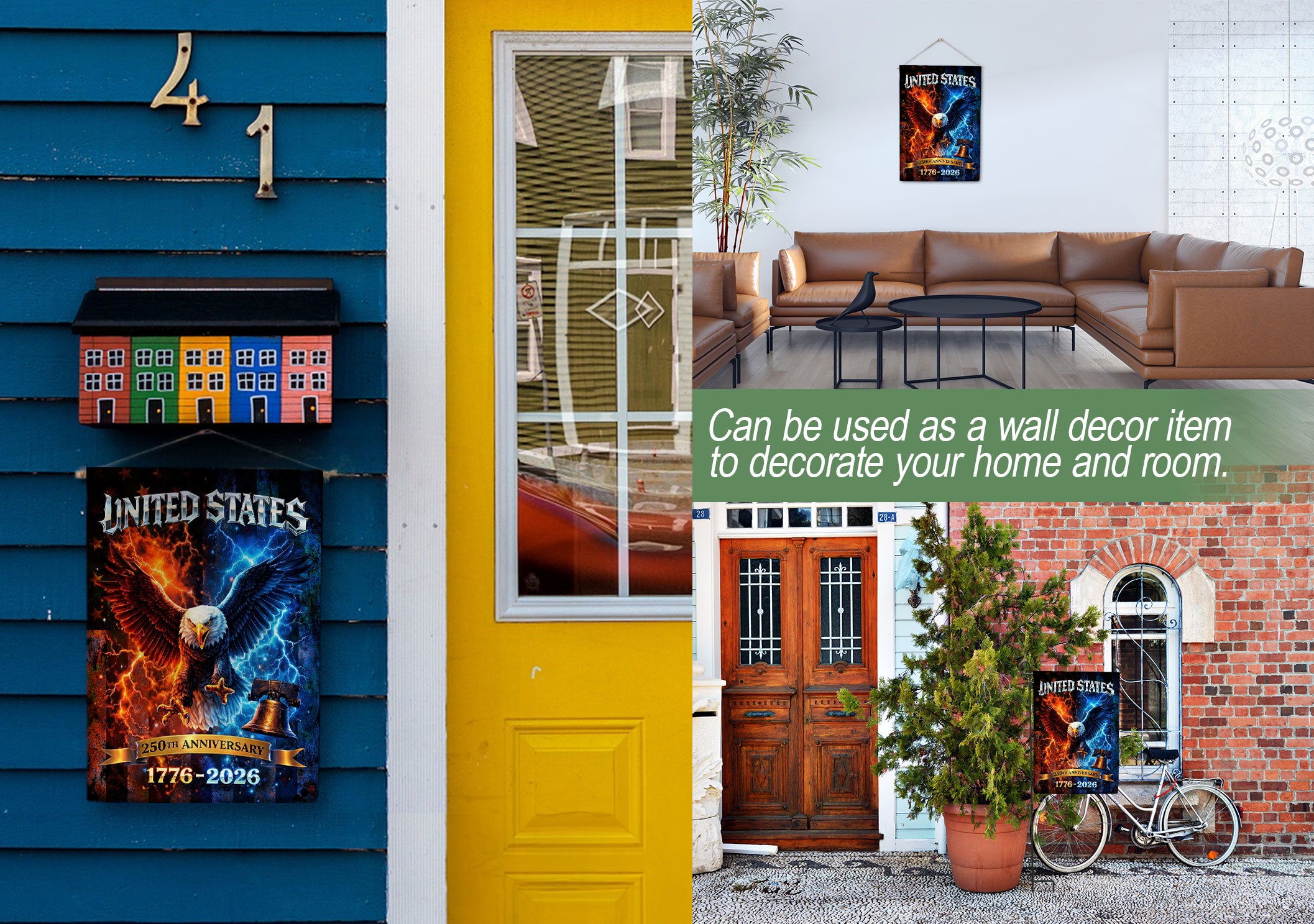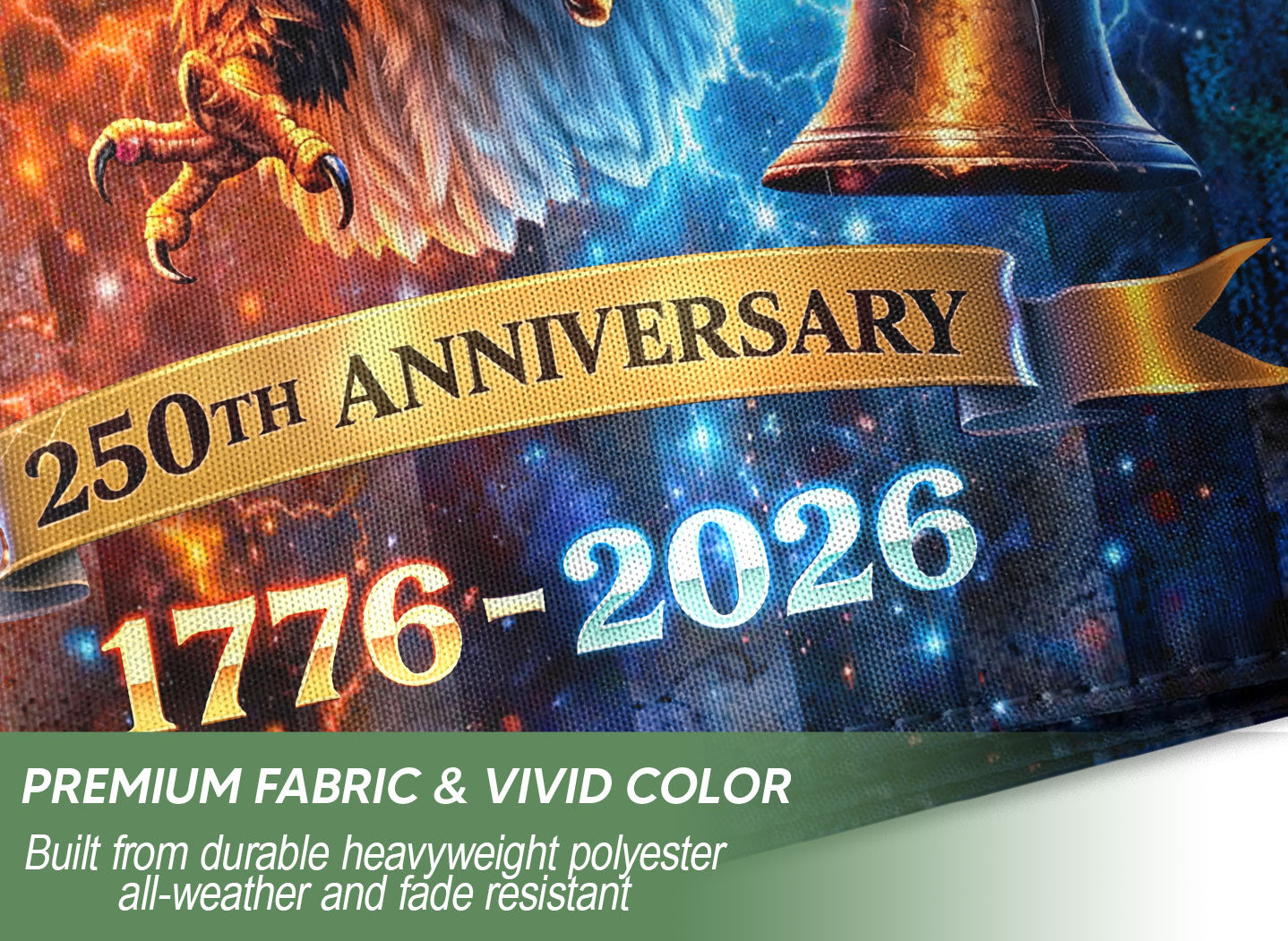 Celebrate 250 years of American independence with this double-sided house flag featuring the iconic Statue of Liberty and majestic eagle. Spanning from 1776 to 2026, it symbolizes strength, liberty, and resilience. Perfect for outdoor display on your porch, yard, or garden, this durable flag withstands the elements while proudly showcasing patriotic pride. Crafted for long-lasting vibrancy on both sides, it’s an essential decor piece for the semiquincentennial anniversary. Ideal for patriots honoring U.S. history and freedom.