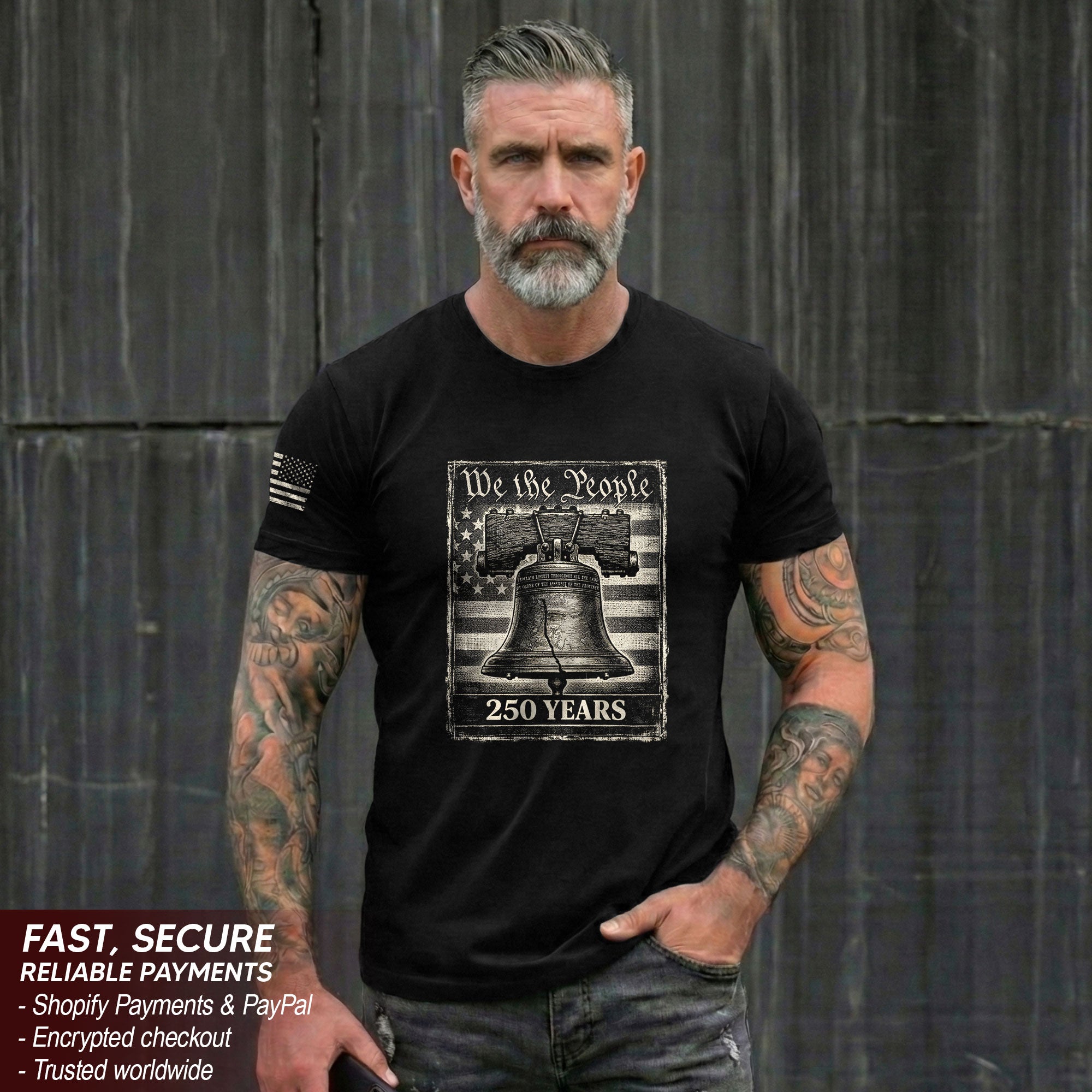 Celebrate 250 years of American independence with this patriotic America 250th Anniversary T-Shirt. Featuring the iconic Liberty Bell and ‘We The People’ design, it honors the period from 1776 to 2026. Crafted from soft, breathable cotton for all-day comfort, this tee blends timeless symbolism with modern style. Perfect for Fourth of July celebrations, historical events, veterans, history buffs, or everyday wear showing national pride. Available in multiple sizes for men, women, and unisex fit. Durable print ensures the design stays vibrant wash after wash. Embrace the courage and conviction of the American spirit in this essential patriotic apparel.