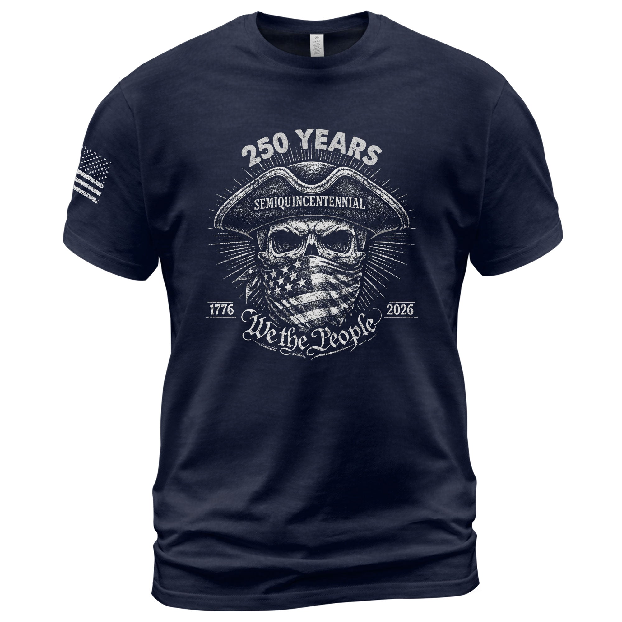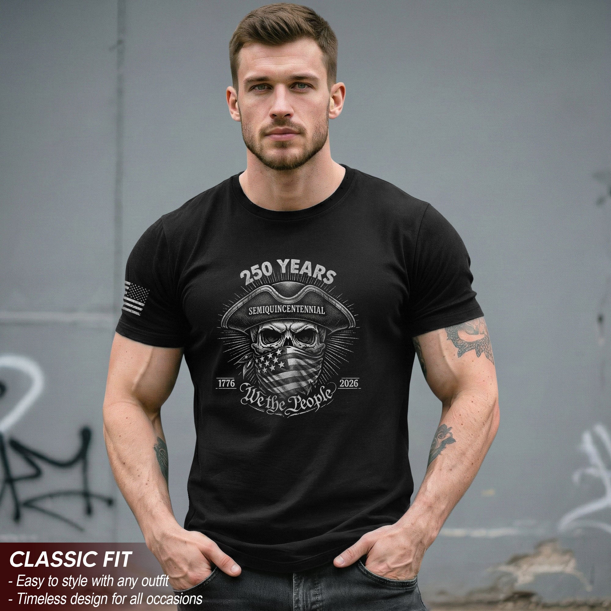 Celebrate America’s 250th anniversary from 1776 to 2026 with this striking We The People Patriot Skull T-Shirt. Featuring a bold, edgy graphic that blends the iconic ‘We The People’ phrase with a revolutionary skull design, this tee embodies the fearless determination of the founding era and honors 250 years of freedom and resilience. Crafted from soft, breathable cotton for all-day comfort, it’s perfect for patriots, history enthusiasts, and anyone proud of American heritage. Ideal for 4th of July celebrations, veterans’ events, historical reenactments, or everyday wear to show your revolutionary spirit. Available in multiple sizes for men, women, and unisex fit. Machine washable and durable for long-lasting wear.
