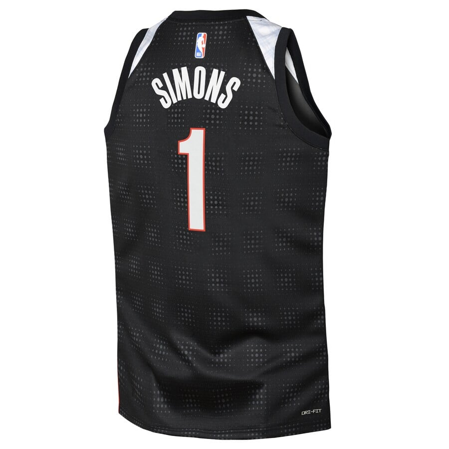 Show your support for Anfernee Simons and the Portland Trail Blazers with this 2024/25 City Edition Swingman Player Youth Jersey in black. Crafted from 100% lightweight polyester fabric, it offers superior breathability and comfort, keeping young fans cool during games, practices, or casual outings. The classic fit ensures easy movement and a clean, stylish look that pairs perfectly with shorts, jeans, or athletic wear. Ideal for training sessions, school events, fan meetups, or everyday wear. This jersey features authentic-inspired design elements like team colors and player details, perfect for aspiring athletes or dedicated supporters. Durable construction withstands repeated washes while maintaining vibrant colors. Available in youth sizes S to 3XL for the perfect fit. Note: This is a generic sports apparel item, not affiliated with any professional teams or leagues.