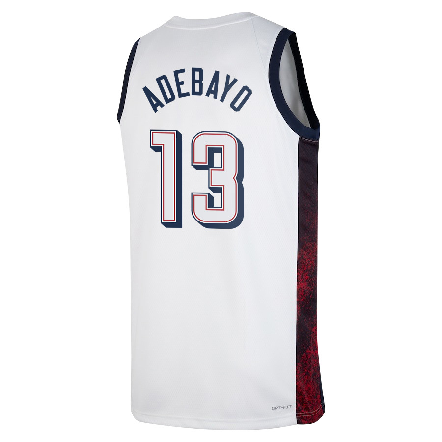 Elevate your basketball style with the Bam Adebayo 13 Men’s USA Basketball Unisex 2024 Swingman Player Jersey in white. Crafted from 100% polyester, this lightweight and breathable fabric ensures maximum comfort and ventilation during intense workouts, training sessions, or casual everyday wear. The classic fit offers a versatile silhouette that pairs effortlessly with shorts, jeans, or athletic gear for fan-inspired outfits or game-day looks.