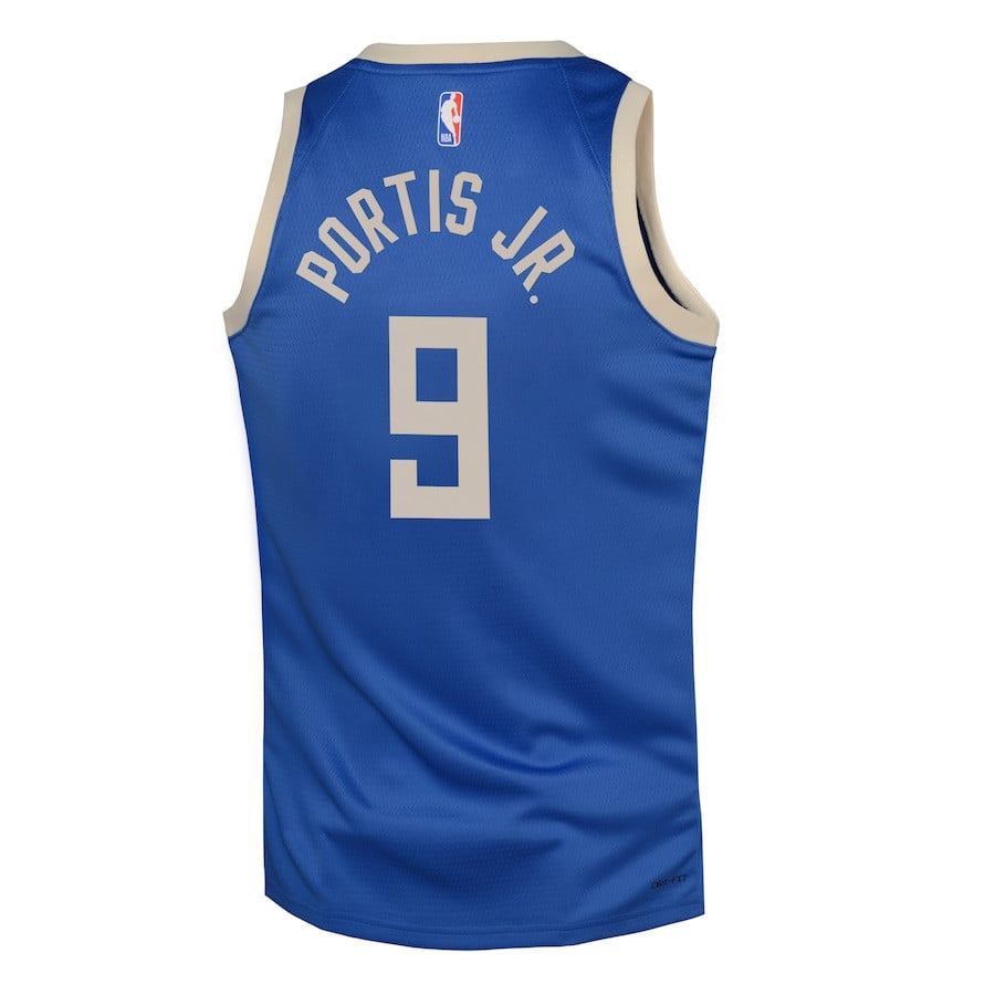 Show your Milwaukee Bucks fandom with this Bobby Portis Jr. #9 Youth Swingman Jersey from the 2024/25 City Edition in royal blue. Crafted from 100% lightweight polyester fabric, it offers superior breathability and comfort for young fans during games, practice, or casual wear. The classic fit ensures easy movement, while the vibrant multicolor design captures the team’s iconic City Edition style. Perfect for basketball enthusiasts, this durable jersey is machine-washable and built to last through seasons of cheering. Available in youth sizes S to 3XL. Note: This is a generic sports apparel item, not affiliated with any professional teams or leagues.