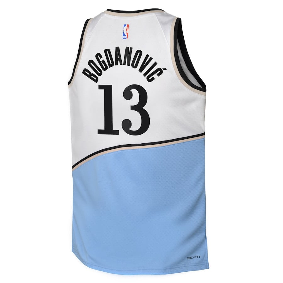 Celebrate your favorite player with the Bogdan Bogdanovic #13 Atlanta Hawks 2024/25 Swingman Youth Jersey in City Edition White. This lightweight, breathable youth jersey is crafted from 100% polyester for optimal comfort and performance during games, practices, or casual fan wear. The classic fit ensures easy movement and a clean, stylish look that pairs perfectly with shorts, jeans, or athletic gear. Designed specifically for young fans, it features the iconic Atlanta Hawks City Edition design, player name and number, and team details for authentic style. Ideal for basketball enthusiasts, school events, or everyday support. New condition, available in youth sizes S to 3XL. Multicolor accents highlight the premium athletic fabric that wicks moisture and dries quickly. Note: This is a generic sports apparel item, not affiliated with professional teams or leagues.