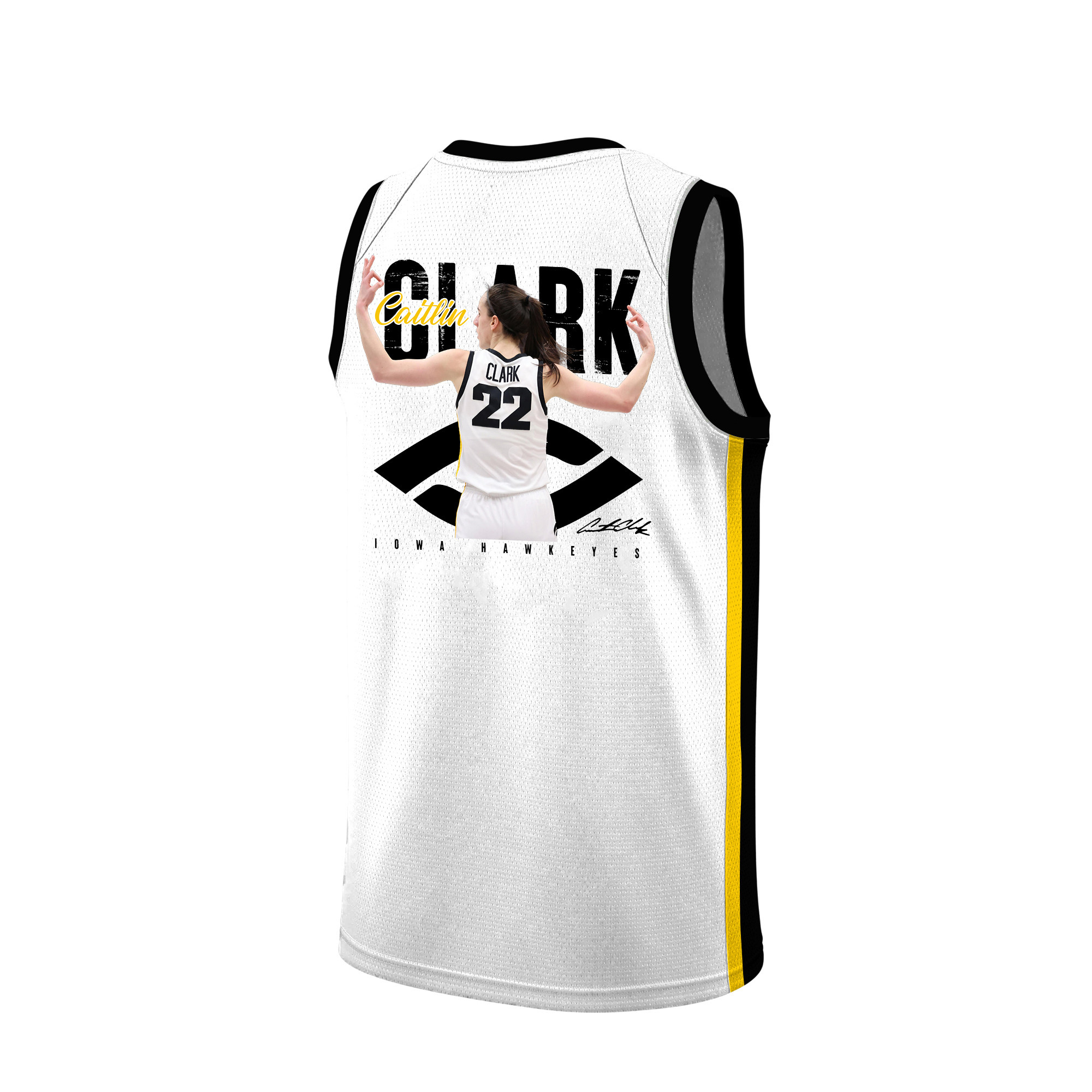 Elevate your fan style with the Caitlin Clark #22 Iowa Hawkeyes 2024 Basketball Jersey Graphic Pattern V2 in white multicolor. This unisex adult sports jersey is crafted from 100% polyester lightweight and breathable fabric, ensuring comfort and coolness during workouts, training sessions, casual daily wear, or game-day outfits. The classic fit and eye-catching graphic pattern make it versatile for pairing with shorts, jeans, or athletic gear. Available in sizes S, M, L, XL, 2XL, 3XL. New condition. Perfect for basketball enthusiasts showing support for Iowa Hawkeyes and Caitlin Clark. Note: This is a generic sports apparel item, not affiliated with any professional teams or leagues.