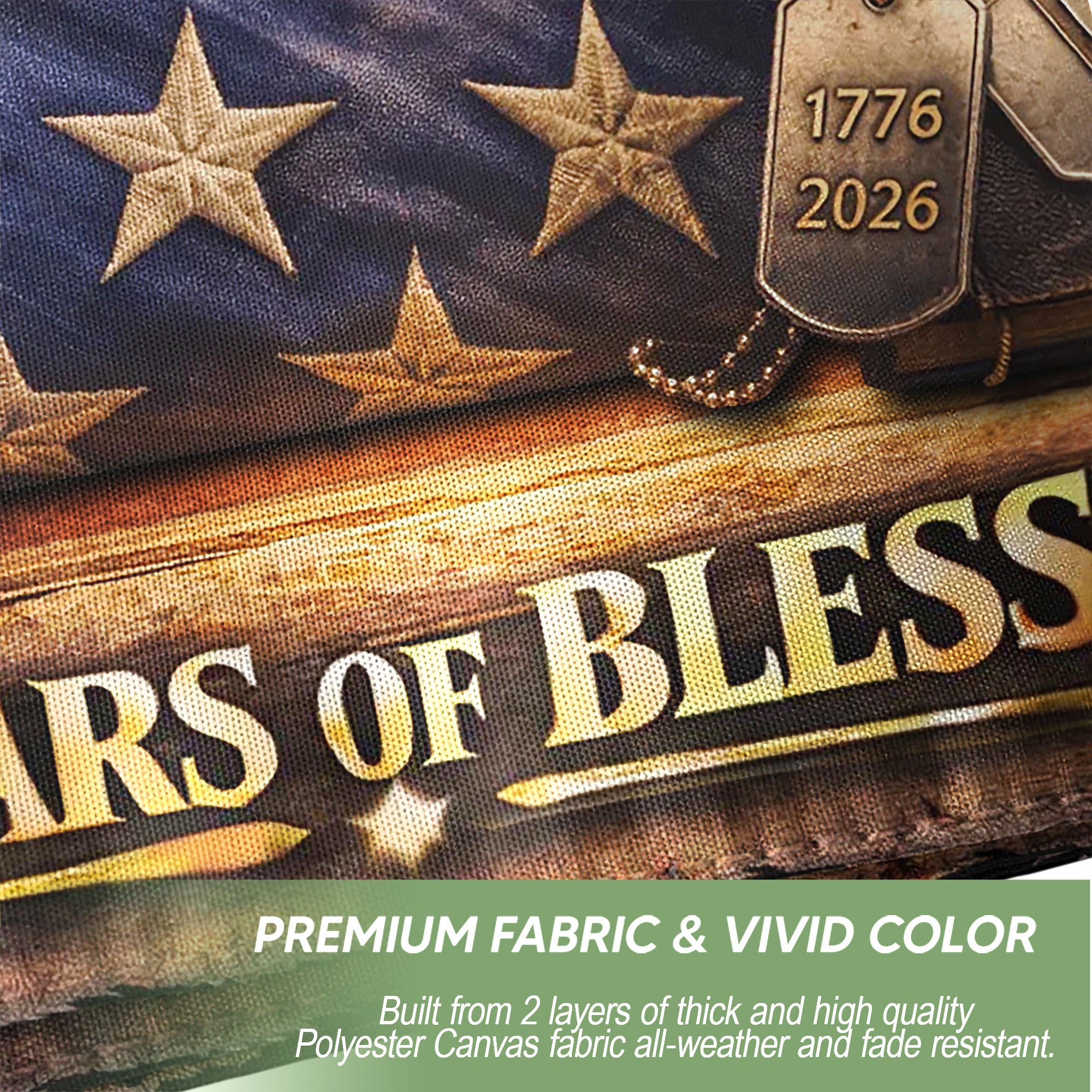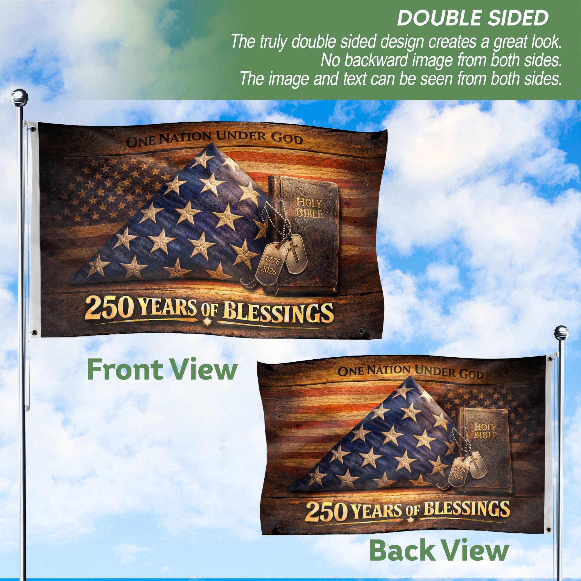Celebrate America’s 250th anniversary from 1776 to 2026 with this striking Christian flag banner. Featuring the Holy Bible and ‘One Nation Under God’ design, this double-sided house flag showcases patriotic pride and religious faith. Crafted from premium polyester fabric, it delivers vibrant, fade-resistant colors visible from both sides. Weather-resistant properties protect against rain, wind, and sun, making it ideal for long-term outdoor display on porches, garages, or home exteriors. Reinforced grommets allow for easy hanging with ropes or clips. Perfect for patriots, Christians, and history lovers honoring the nation’s enduring values of hope, tradition, and divine guidance during the 2026 semiquincentennial observance. Durable construction ensures it withstands the elements while proudly waving your faith and American spirit.
