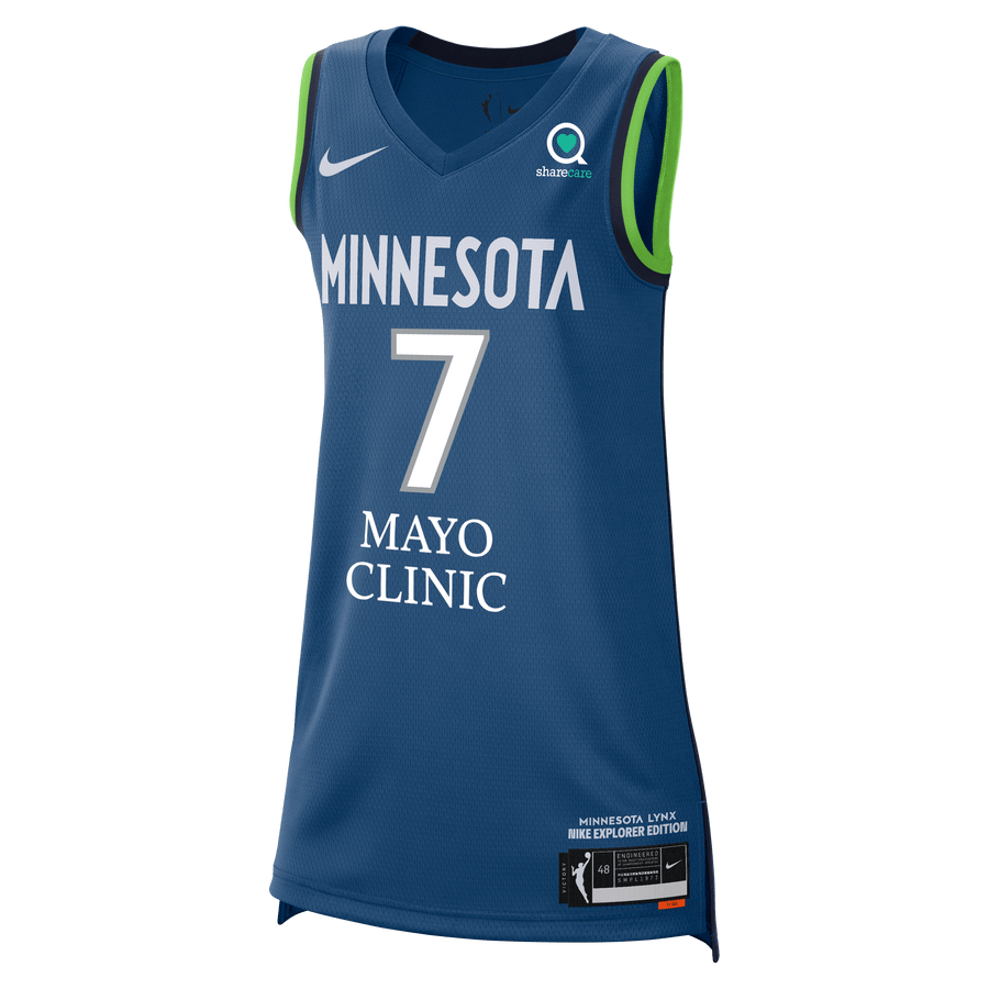 The Clarendon 7 Minnesota Lynx Explorer Jersey in blue is a lightweight, breathable sports jersey perfect for fans, athletes, and casual wear. Crafted from 100% polyester, it offers superior comfort and durability, wicking away moisture to keep you cool during workouts, training sessions, games, or everyday outings. The classic fit and clean design feature multicolor accents inspired by the Minnesota Lynx, making it versatile for layering or standalone style. Available in adult sizes S-3XL, this unisex jersey suits training, fan gear, or relaxed apparel. New condition, not affiliated with professional teams.