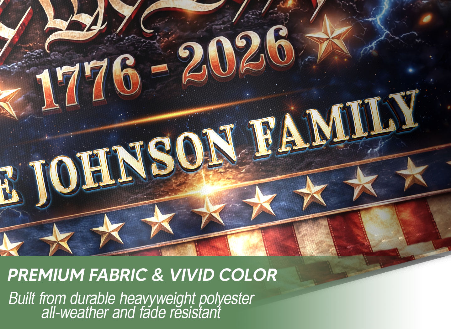 Celebrate America’s 250th anniversary with this personalized garden flag featuring custom family name. Showcases iconic portraits of Founding Fathers Benjamin Franklin and George Washington, plus Abraham Lincoln, the historic ‘We the People’ inscription, and the American flag. Honors the journey from 1776 to 2026, perfect for patriotic displays in gardens, yards, or porches. Durable fabric withstands outdoor conditions, vibrant colors and detailed printing ensure long-lasting appeal. Ideal for history enthusiasts, veterans, or families marking this milestone with a unique, custom touch.