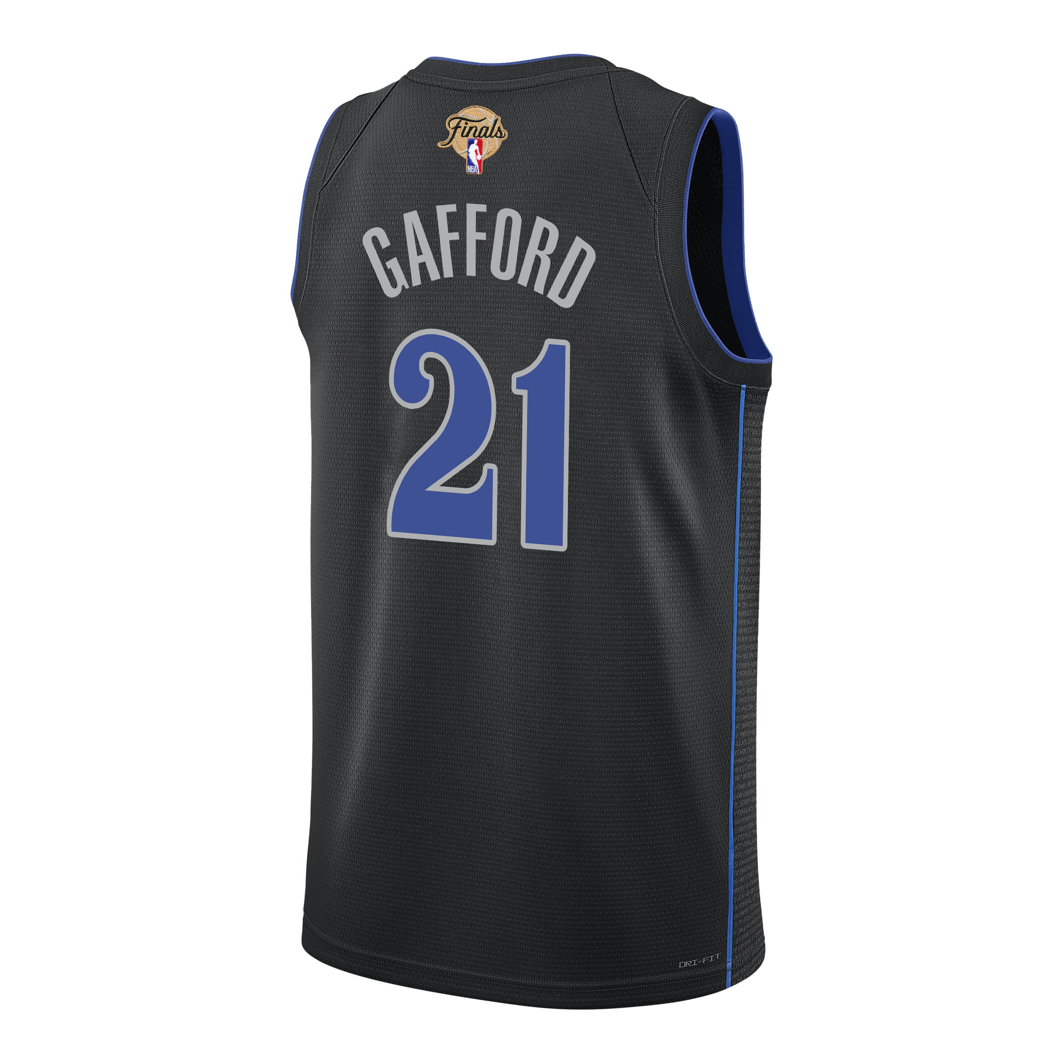The Daniel Gafford 21 Dallas Mavericks 2024 Finals Patch Swingman Jersey in City Edition Black is a lightweight, breathable sports jersey perfect for fans and athletes. Crafted from 100% polyester, it offers superior comfort, moisture-wicking performance, and durability for training sessions, games, or casual everyday wear. The classic fit and clean design feature the iconic Finals patch, player number 21, and Mavericks branding, making it ideal for fan-inspired outfits. Unisex adult sizing available in S, M, L, XL, 2XL, 3XL. This generic sports apparel item is new and designed for all-day coolness and style.