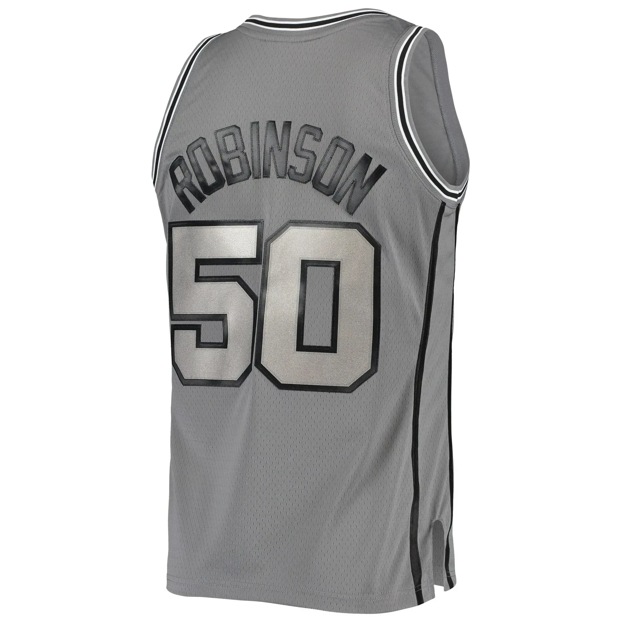 Celebrate NBA legend David Robinson with this Mitchell & Ness Hardwood Classics Retired Player Swingman Jersey from the 1998/99 San Antonio Spurs Metal Works collection. Crafted from 100% polyester, this lightweight and breathable jersey ensures comfort and durability for game days, training sessions, casual wear, or fan gear. The classic fit offers a versatile silhouette that pairs easily with jeans, shorts, or athletic wear. Featuring authentic Spurs graphics, player name and number, and charcoal multicolor design elements, it’s perfect for Spurs fans and basketball enthusiasts. Available in adult sizes S-3XL. Unisex styling makes it ideal for any Spurs supporter.