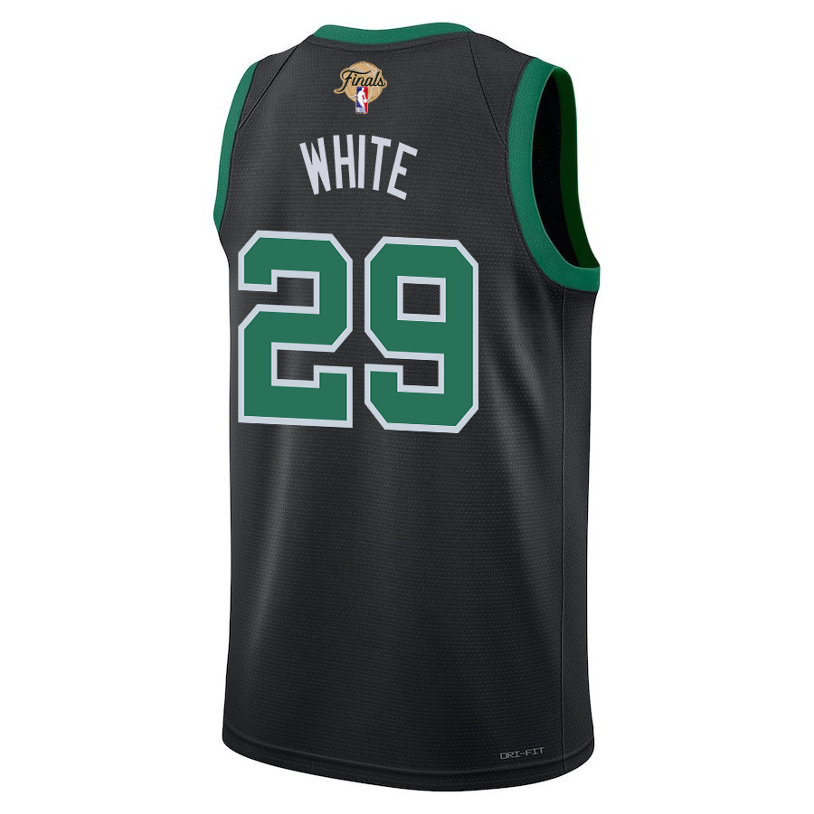 Elevate your fan gear with the Derrick White 29 Boston Celtics 2024 Finals Patch Swingman Jersey in Statement Edition black. This unisex jersey is crafted from 100% polyester for lightweight, breathable comfort, perfect for game days, training sessions, casual wear, or showing team pride. The classic fit offers durability and style, with a clean design featuring the Finals patch, player number 29, and iconic team details. Available in adult sizes S-3XL, it’s ideal for basketball enthusiasts seeking authentic-inspired athletic wear that keeps you cool and dry during activities or everyday outfits. Note: This is a generic sports apparel item, not affiliated with any professional teams or leagues.