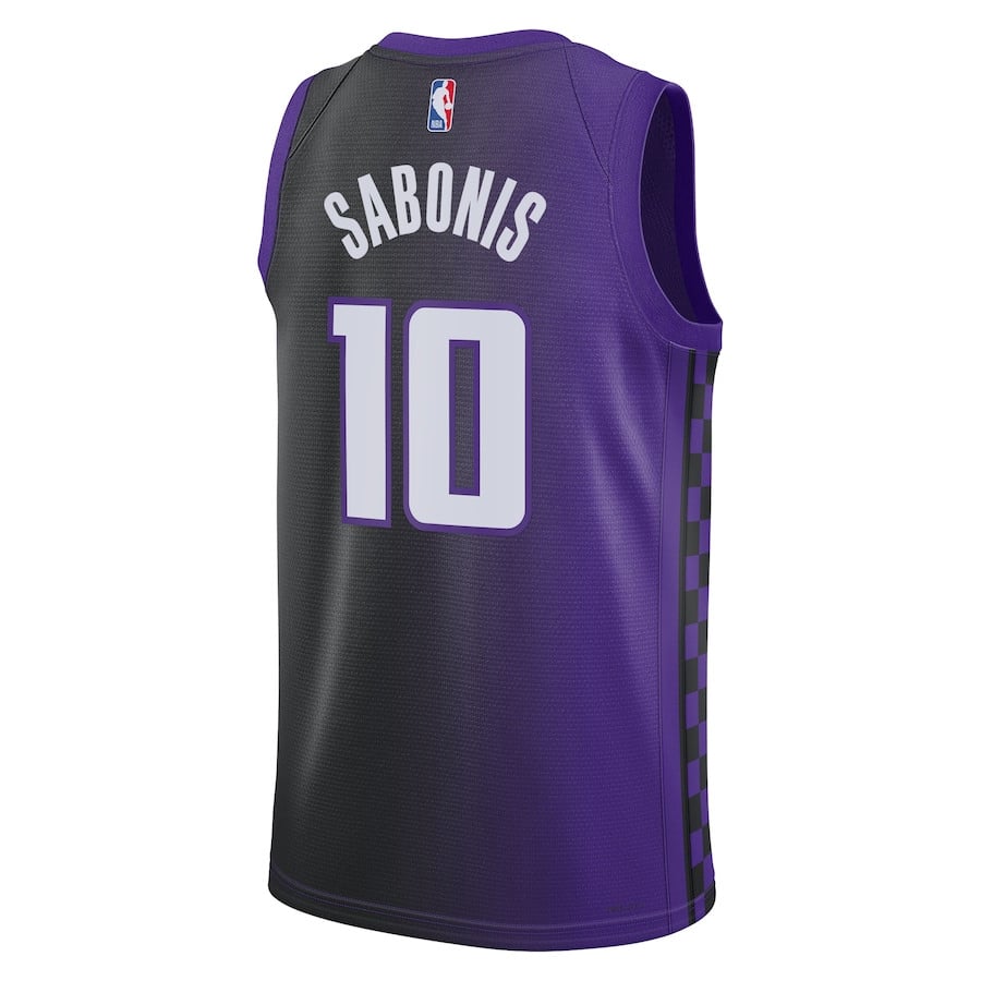 The Domantas Sabonis 10 Sacramento Kings Unisex Swingman Jersey in Statement Edition features a striking purple and black colorway. Crafted from 100% polyester, this lightweight and breathable fabric ensures comfort and coolness during workouts, games, or casual everyday wear. The classic fit offers versatility for training sessions, fan gear, or street style outfits. Available in adult sizes S to 3XL, it’s designed for durability and easy pairing with various looks. Perfect for basketball enthusiasts seeking authentic-inspired style without official affiliation.