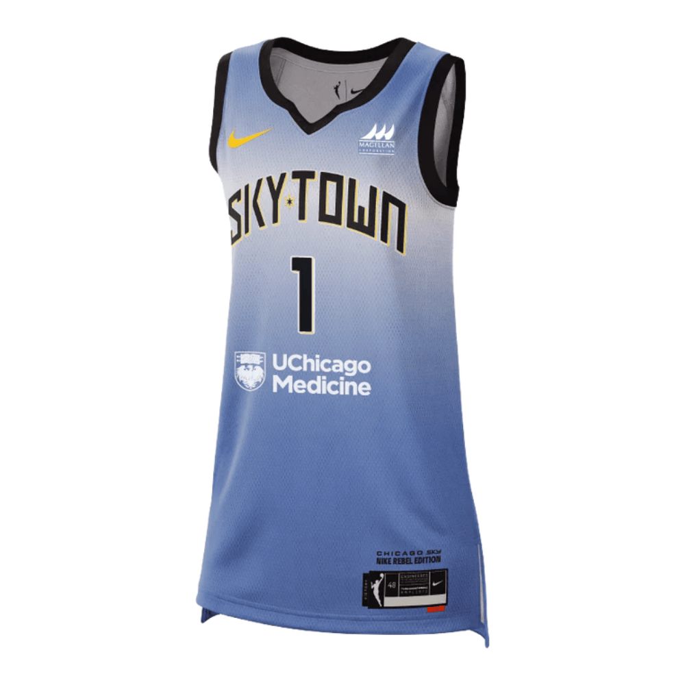 Experience the Elizabeth Williams Chicago Sky 2024 Rebel Edition unisex jersey in light blue, crafted for fans and athletes alike. Made from 100% polyester, this lightweight and breathable sports jersey ensures optimal comfort during workouts, training sessions, or casual everyday wear. The classic fit offers versatility, pairing effortlessly with shorts, jeans, or athletic gear for a fan-inspired look.