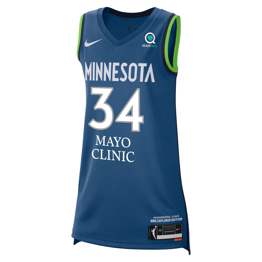 The Fowles 34 Minnesota Lynx Explorer Jersey in blue is a lightweight, breathable sports jersey perfect for fans, athletes, and casual wear. Crafted from 100% polyester, it offers superior comfort and durability, wicking away moisture to keep you cool during workouts, training sessions, games, or everyday outings. The classic fit and clean design feature the iconic Minnesota Lynx styling with player number 34, making it ideal for fan-inspired outfits or team spirit displays. Unisex adult sizing available in S, M, L, XL, 2XL, 3XL ensures a versatile fit for all. This new jersey combines performance fabric with stylish basketball aesthetics for versatile use on or off the court.