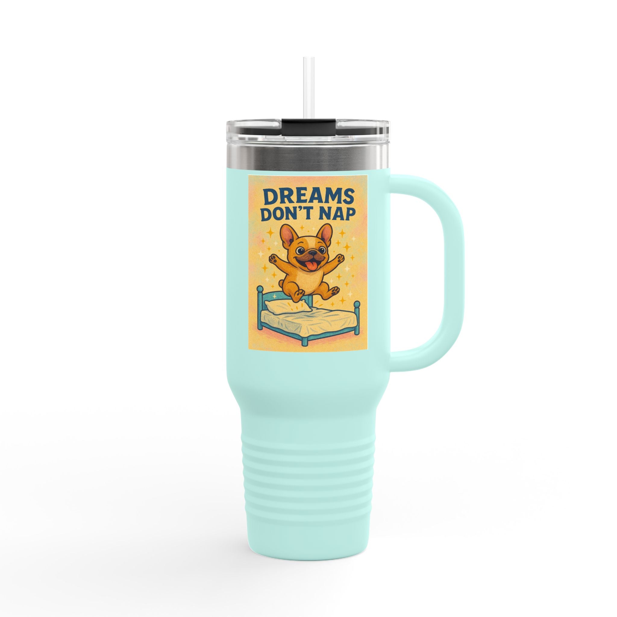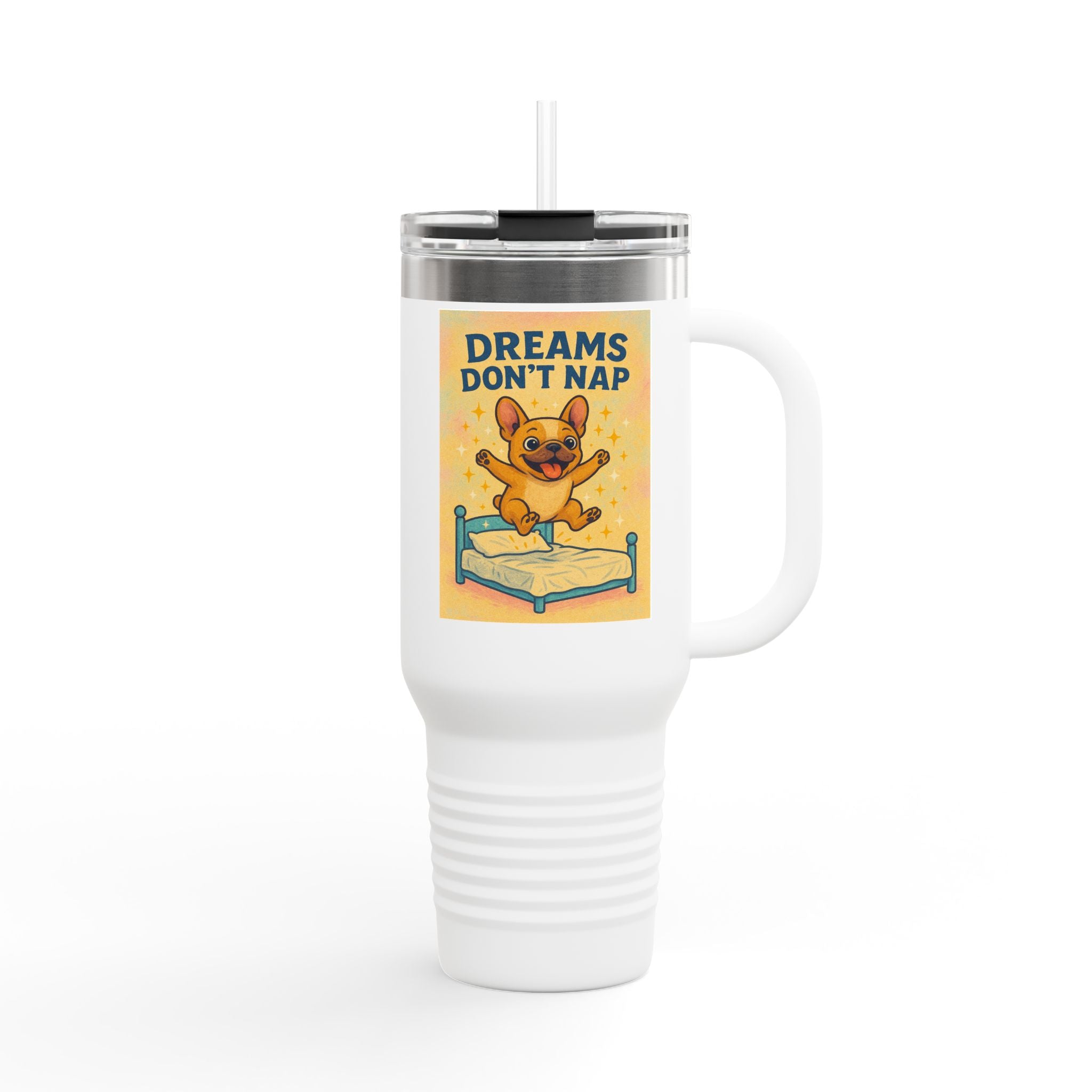 This french bulldog Insulated Travel Mug, 40oz is perfect for keeping your drinks hot or cold for hours. With its large capacity and convenient handle, it’s ideal for long trips and outdoor activities. The leak-proof lid ensures no spills, making it a great companion for on-the-go lifestyles. This mug is relevant for dog lovers, pet owners, travelers, and outdoor enthusiasts. It’s perfect for gifting on birthdays, holidays, or as a treat for yourself. Product features – High-Quality Stainless Steel Construction – Double-wall Insulation for Temperature Retention – Large 40oz Capacity – Convenient Handle Design – Leak-Proof Lid with Secure Seal Care instructions – Clean in dishwasher (put the product on top rack), or wash by hand with warm water and dish soap