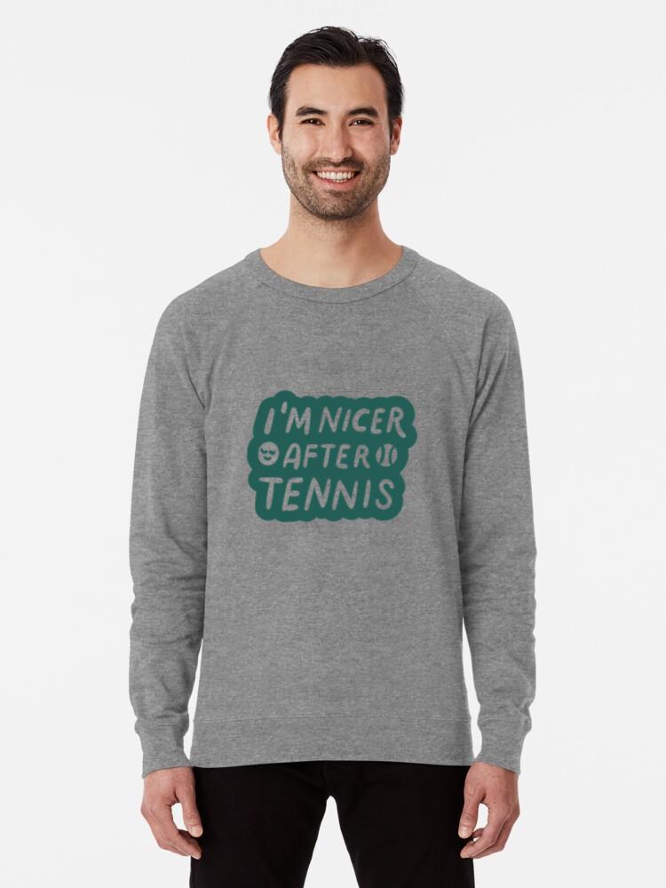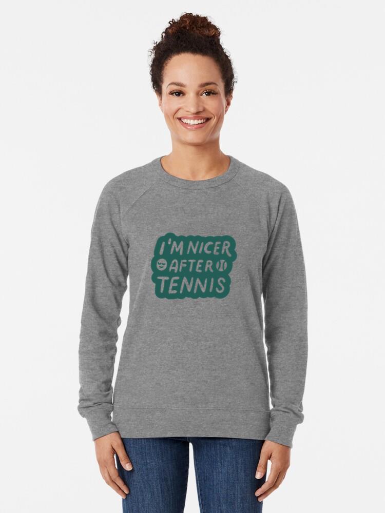 Stay cozy and casual with the Im Nicer After Tennis Sticker Sweatshirt sweatshirt. Crafted from soft heavy blend fabric it is perfect for layering or lounging any time of year