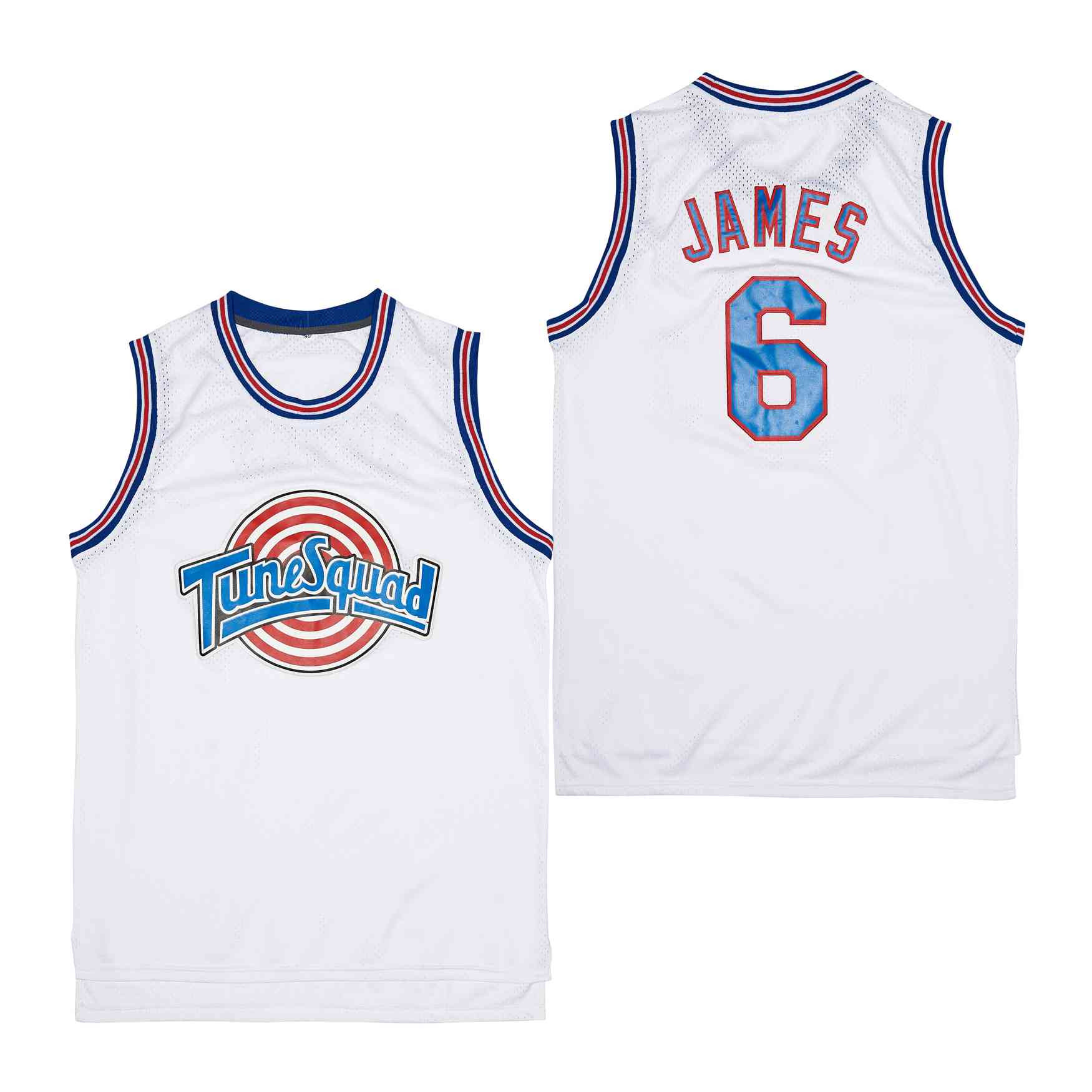 The James 6 Tune Squad Space Jam Swingman Jersey in white with multicolor accents is a lightweight, breathable sports jersey perfect for basketball fans, training sessions, casual daily wear, or fan-inspired outfits. Crafted from 100% polyester fabric, it offers superior comfort, durability, and moisture-wicking properties to keep you cool and dry during activities or everyday use. The classic fit and clean design make it versatile for pairing with shorts, jeans, or athletic wear. This unisex adult jersey is available in sizes S, M, L, XL, 2XL, 3XL, ensuring a great fit for all. Ideal for Space Jam enthusiasts celebrating the Tune Squad legacy with style and performance.