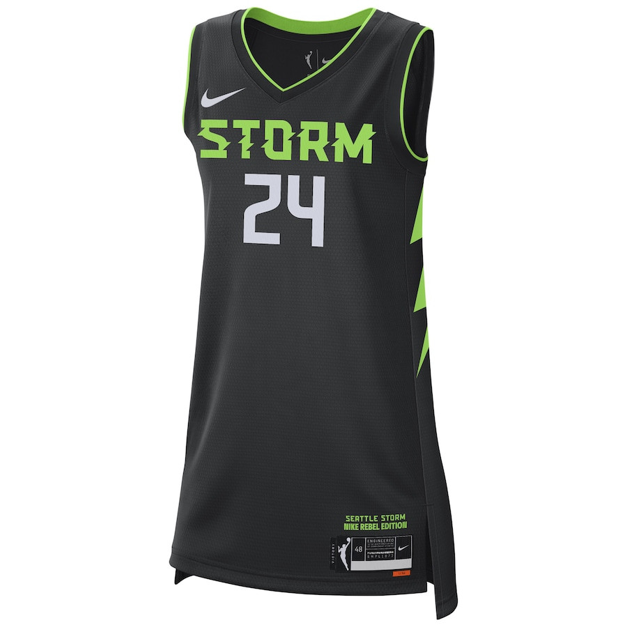 Experience the Jewell Loyd 24 Seattle Storm Unisex 2024 Rebel Edition Player Jersey in black, crafted for ultimate comfort and performance. Made from 100% polyester, this lightweight and breathable fabric keeps you cool during workouts, training sessions, or casual everyday wear. The classic fit and clean multicolor design make it versatile for fan-inspired outfits or athletic activities. Available in adult sizes S, M, L, XL, 2XL, 3XL. Durable construction ensures long-lasting use, whether you’re on the court or cheering from the stands. Perfect for WNBA fans supporting Seattle Storm and Jewell Loyd. This generic sports jersey offers a stylish, breathable option for basketball enthusiasts seeking quality athletic apparel.