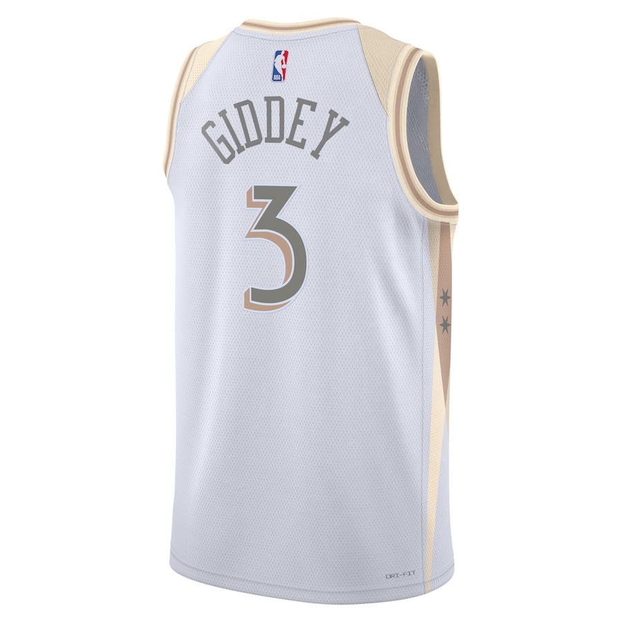 Elevate your fan gear with the Josh Giddey 3 Chicago Bulls Unisex 2024/25 Swingman Player Jersey in City Edition White. Crafted from 100% polyester, this lightweight and breathable jersey ensures comfort during workouts, games, or casual outings. The classic fit offers versatility for layering or standalone wear, while the clean design captures authentic team spirit. Ideal for basketball enthusiasts, training sessions, daily wear, or showing support at events. Available in adult sizes S-3XL. New condition, multicolor accents on white base. Perfect for Bulls fans seeking durable, stylish athletic apparel.