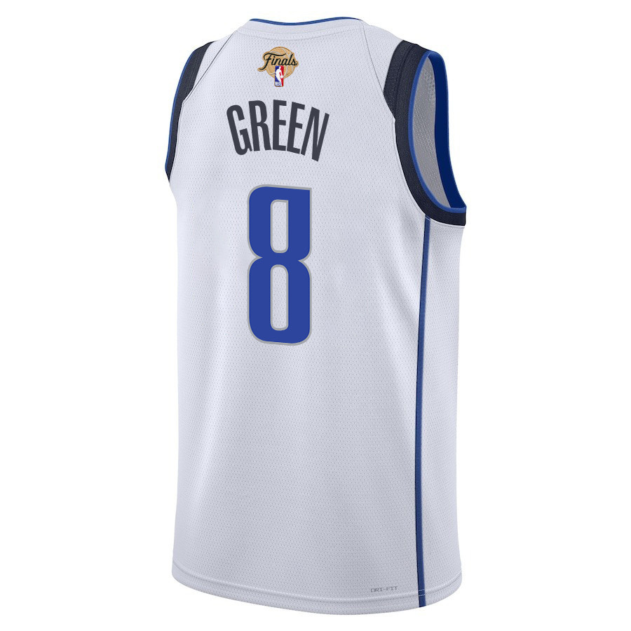 The Josh Green 8 Dallas Mavericks 2024 Finals Patch Swingman Jersey in Association Edition White is a lightweight, breathable sports jersey perfect for fans and athletes. Crafted from 100% polyester, it offers superior comfort, durability, and moisture-wicking performance to keep you cool during games, training sessions, workouts, or casual everyday wear. This unisex adult jersey features a classic fit with a clean design, making it versatile for layering or standalone styling. Key details include the iconic player number 8, team graphics, 2024 Finals patch, and Swingman construction for authentic on-court feel. Available in sizes S-3XL. Ideal for basketball enthusiasts, fan gear collections, or athletic apparel needs. New condition, multicolor accents on white base.