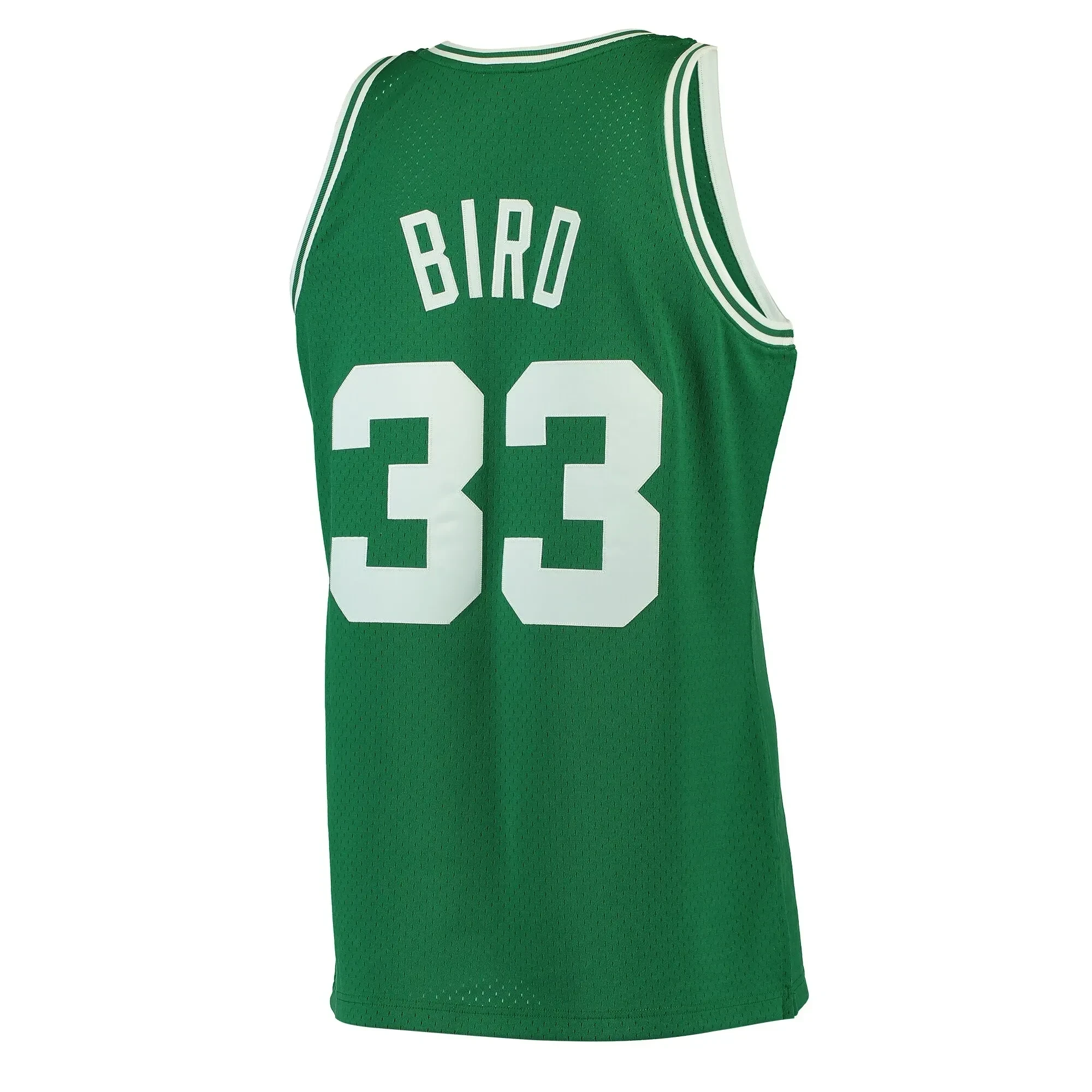 Relive NBA history with the Larry Bird Boston Celtics Mitchell & Ness 1985-86 Hardwood Classics Swingman Jersey in iconic Kelly Green. Crafted from 100% polyester, this lightweight and breathable jersey ensures comfort during workouts, games, or casual fan wear. The classic swingman fit offers a versatile silhouette that pairs easily with jeans, shorts, or athletic gear. Featuring authentic team colors, embroidered logos, and stitched details true to the 1985-86 championship era, it’s perfect for Boston Celtics supporters, basketball enthusiasts, or collectors. Machine washable for easy care. Available in adult sizes S-3XL. Unisex design suits all fans. Not affiliated with NBA teams or leagues.