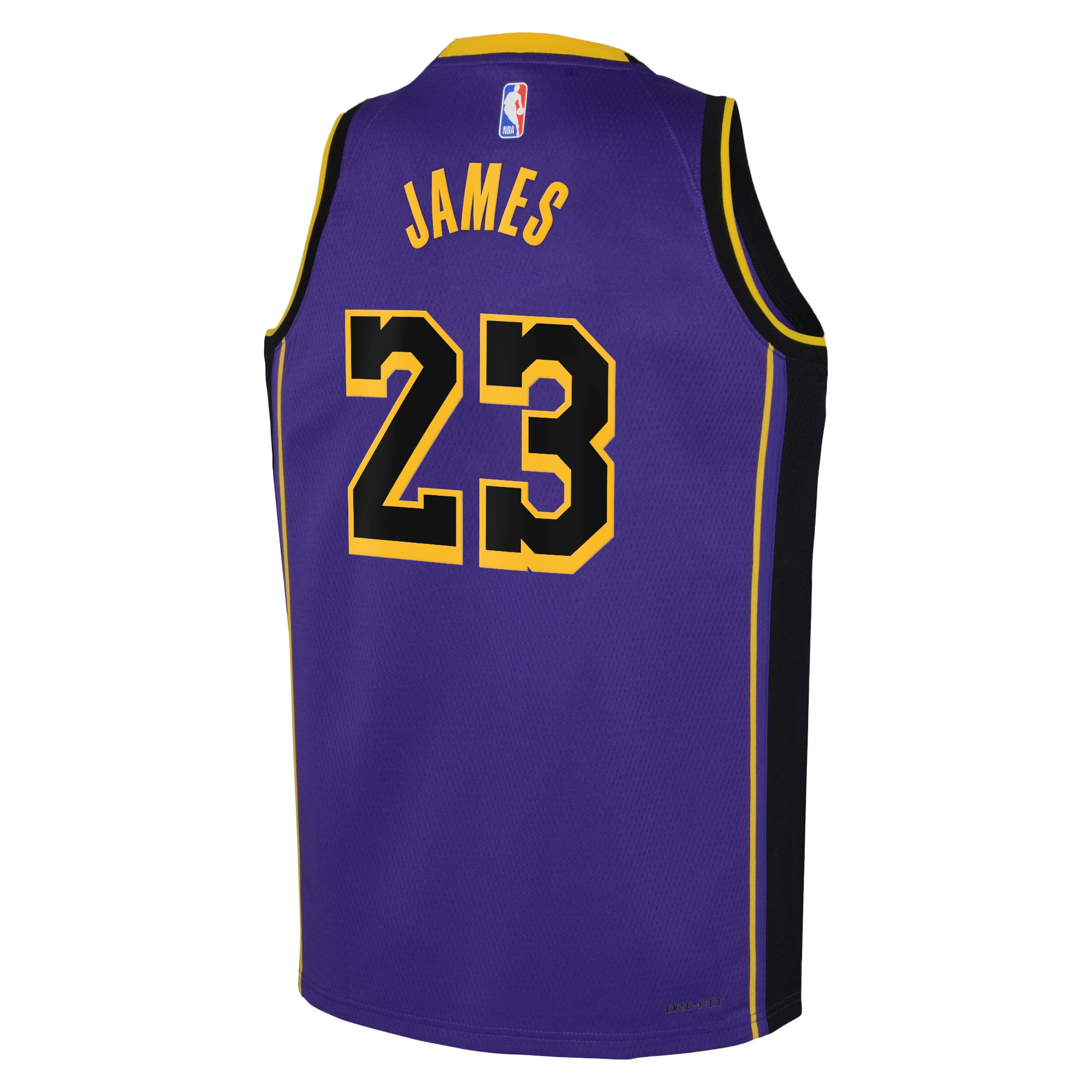 The Los Angeles Lakers Jordan Statement Edition Swingman Jersey in purple for youth features LeBron James’ #22. Crafted from 100% polyester, this lightweight and breathable jersey ensures comfort and durability for young fans. Perfect for basketball games, training sessions, casual wear, or showing team spirit. The classic fit and clean design pair easily with shorts, jeans, or athletic gear. Machine washable for easy care. Available in youth sizes S to 3XL. Not affiliated with official NBA teams.