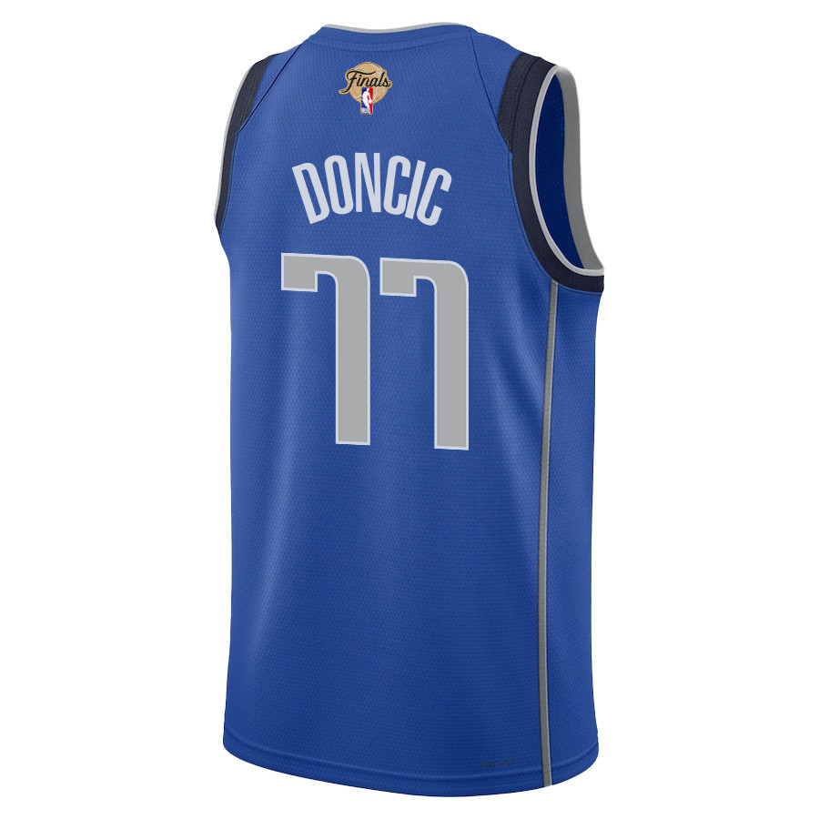 Experience the Luka Doncic 77 Dallas Mavericks 2024 Finals Patch Swingman Jersey in Icon Edition Blue. This unisex sports jersey is crafted from 100% polyester for lightweight, breathable comfort, perfect for staying cool during workouts, training sessions, or casual everyday wear. The classic fit and clean design feature the iconic Mavericks blue with multicolor accents, including the special 2024 Finals patch, making it ideal for fans and athletes alike. Durable construction ensures long-lasting performance, while the versatile style pairs easily with shorts, jeans, or athletic gear. Available in adult sizes S to 3XL. Note: This is a generic sports apparel item, not affiliated with any professional teams or leagues.