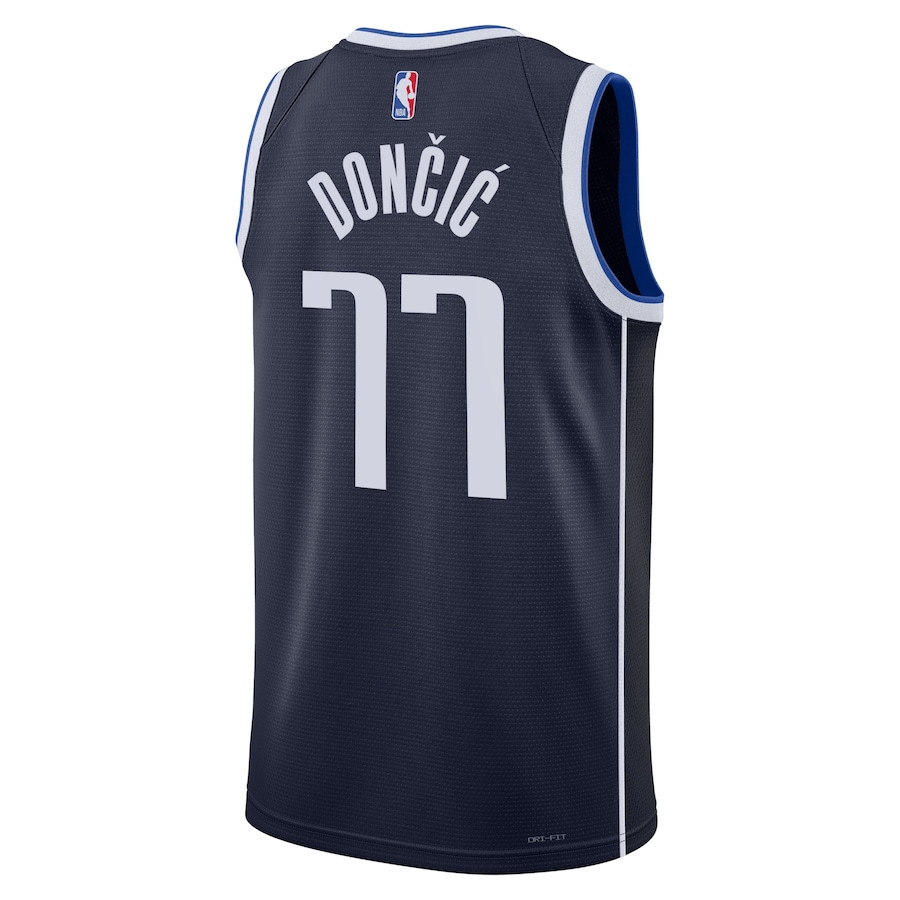 The Luka Doncic 77 Dallas Mavericks Unisex Swingman Jersey in Statement Edition Navy offers lightweight, breathable athletic wear for fans and athletes. Crafted from 100% polyester, this jersey ensures comfort and durability during training, games, or casual everyday wear. Its classic fit and clean design make it versatile for pairing with various outfits, keeping you cool and stylish. Suitable for adults in sizes S to 3XL. Perfect for basketball enthusiasts seeking a high-quality, fan-inspired look. New condition, unisex design.