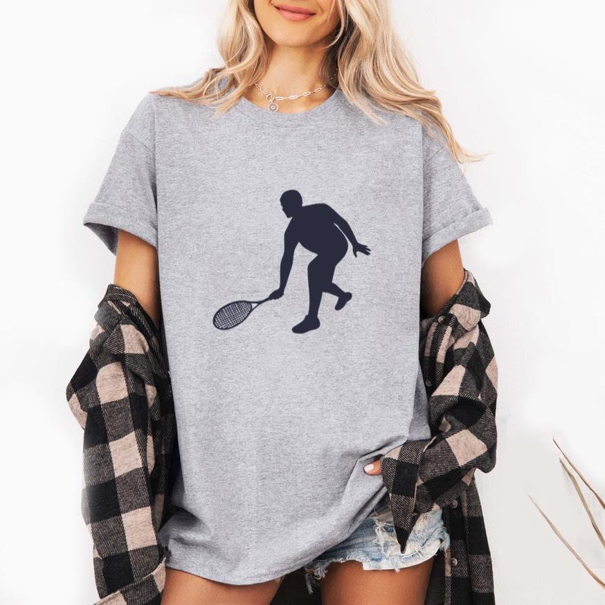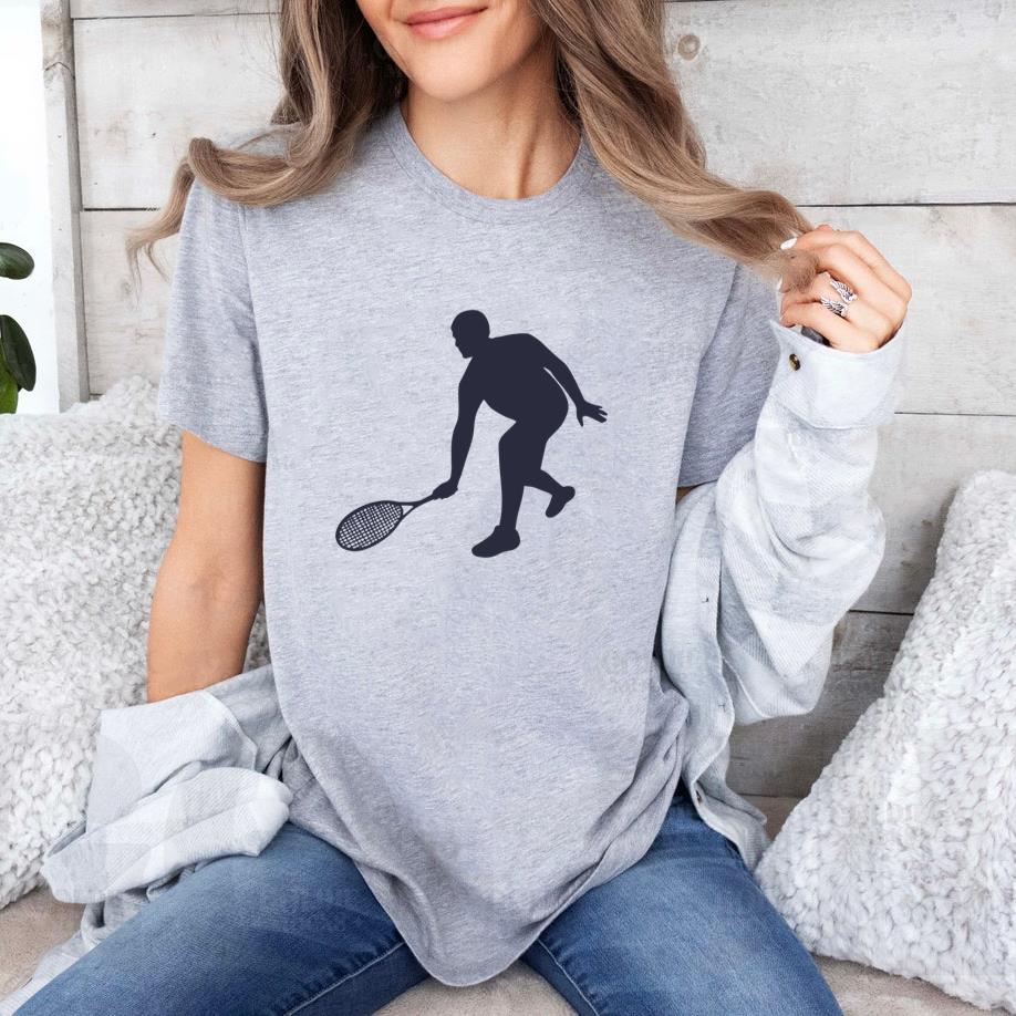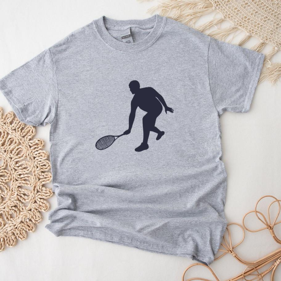 Comfy, casual, and always in style, this Man Tennis Player Pose Silhouette T-Shirt T-shirt is perfect for daily wear or easy gifting.