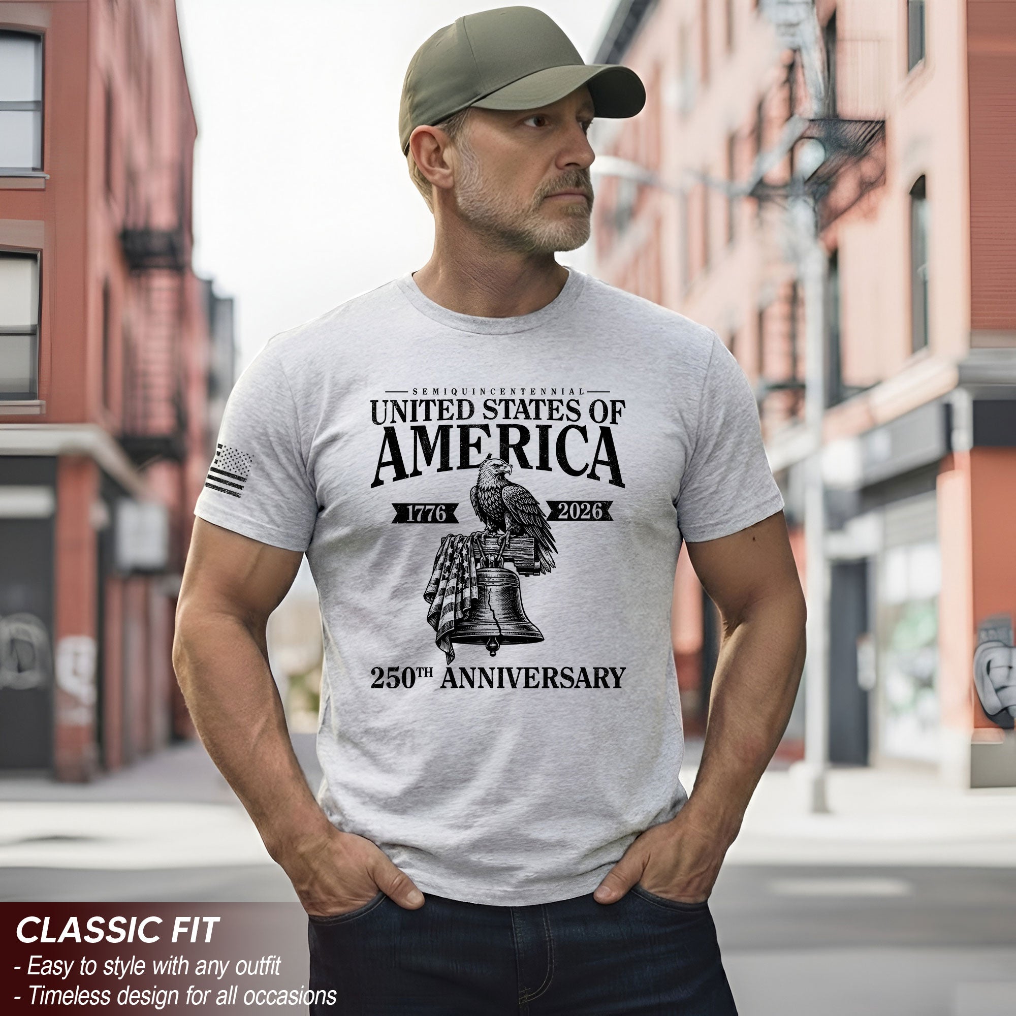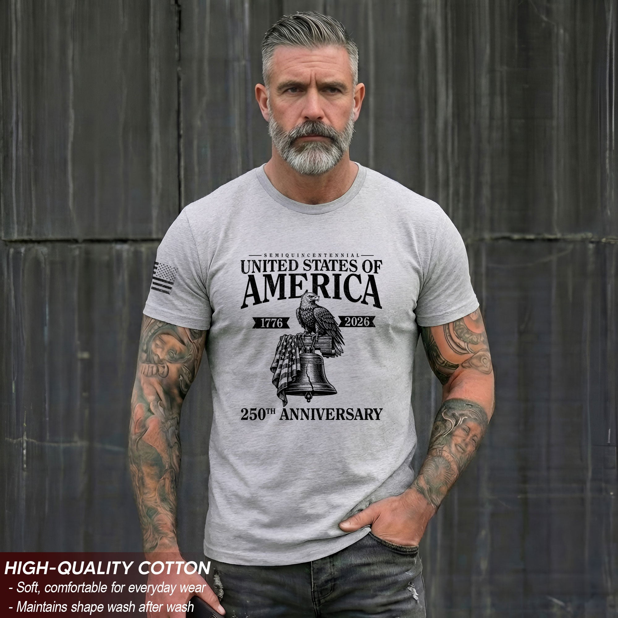 Celebrate 250 years of American independence with this men’s vintage-style T-shirt, commemorating the journey from 1776 to 2026. Featuring iconic patriotic symbols like the Liberty Bell and majestic eagle, this tee captures the timeless spirit of the USA in a classic, distressed vintage design. Crafted from soft, breathable cotton for all-day comfort, it’s perfect for patriots who want to show their pride on Independence Day, Memorial Day, Fourth of July barbecues, or everyday casual wear. Available in multiple sizes for a relaxed fit that suits any occasion. Machine washable and durable for long-lasting wear. Honor America’s history and future in style with this essential patriotic apparel.