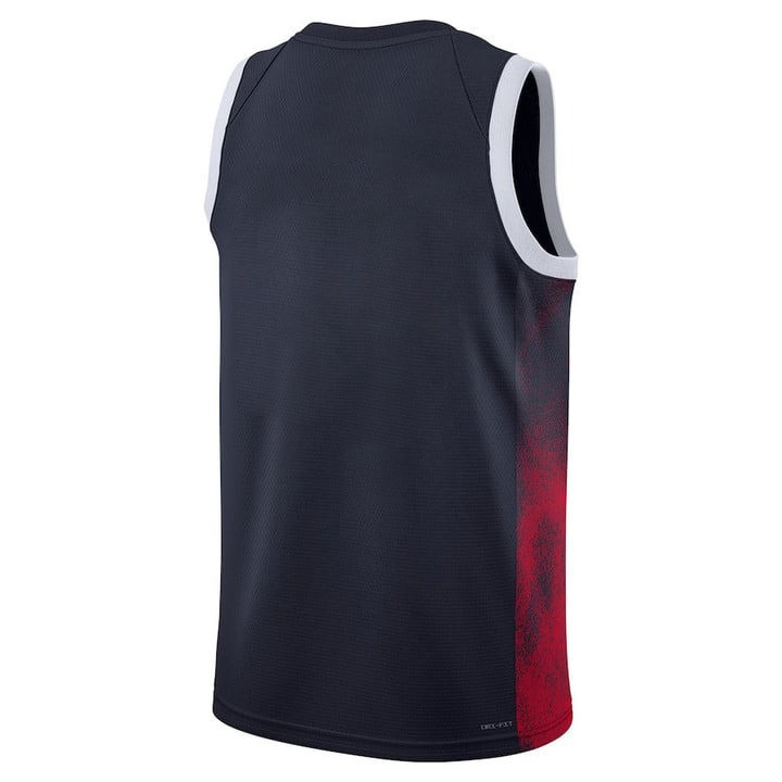 Experience ultimate comfort and performance with the Men’s USA Basketball 2024 Swingman Player Jersey in navy multicolor. Crafted from 100% lightweight polyester fabric, this breathable athletic jersey wicks away moisture to keep you cool during intense training sessions, casual workouts, or everyday fan wear. The classic fit offers versatility, pairing effortlessly with shorts, jeans, or athletic gear for a sporty look.