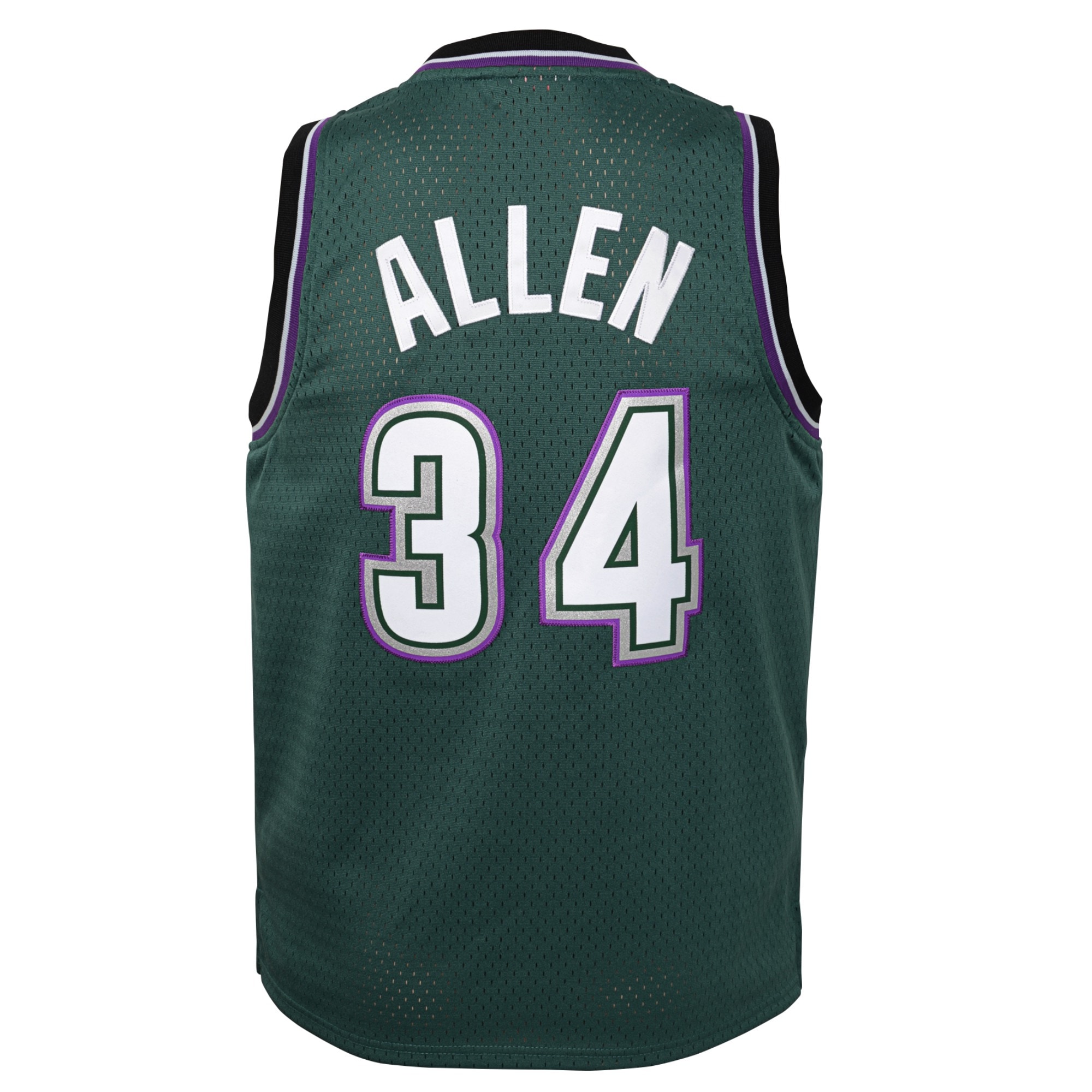 Relive NBA history with the Milwaukee Bucks Ray Allen 1996-97 Hardwood Classics Swingman Jersey in youth sizing. This lightweight, breathable jersey is crafted from 100% polyester for optimal comfort and performance during games, training, or casual fan wear. The classic swingman design features authentic team colors in fir green with multicolor accents, capturing the iconic style of Ray Allen’s era. Perfect for young basketball fans, it offers a relaxed fit suitable for everyday activities or showing team pride. Durable construction ensures it withstands active use while staying cool and dry. Available in youth sizes S to XL. Not affiliated with NBA teams or leagues.