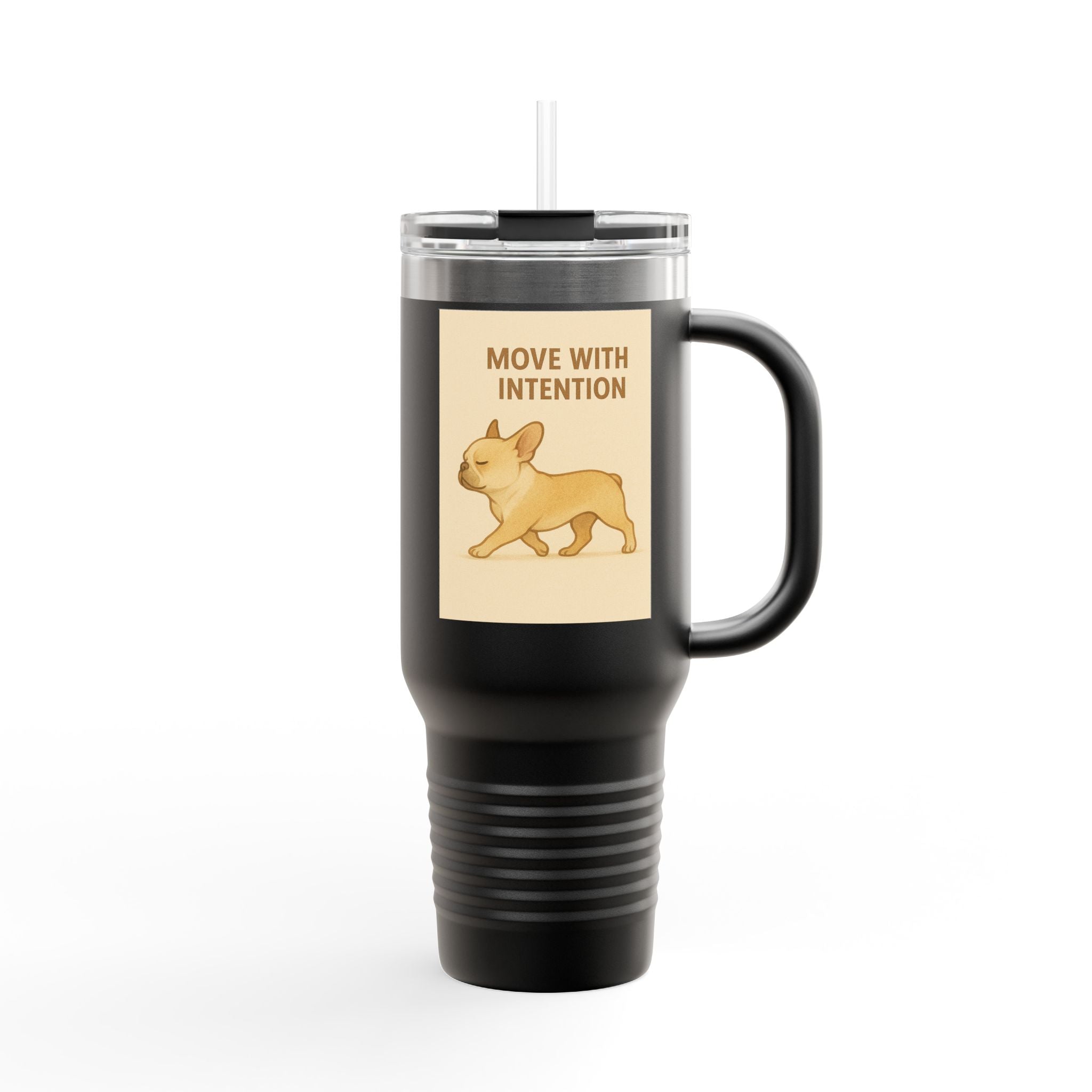Stay hydrated on the go with this move with intention Insulated Travel Mug, 40oz. Perfect for outdoor enthusiasts, fitness lovers, and busy professionals. Ideal for long trips, workouts, and daily commutes. Makes a great gift for birthdays, holidays, and special occasions. Product features – High-Quality Stainless Steel Construction – 40oz Large Capacity – Double-Wall Insulation for Hot or Cold Drinks – Leak-Proof Lid with Convenient Handle – Available in 8 Color Variants Care instructions – Clean in dishwasher (put the product on top rack), or wash by hand with warm water and dish soap