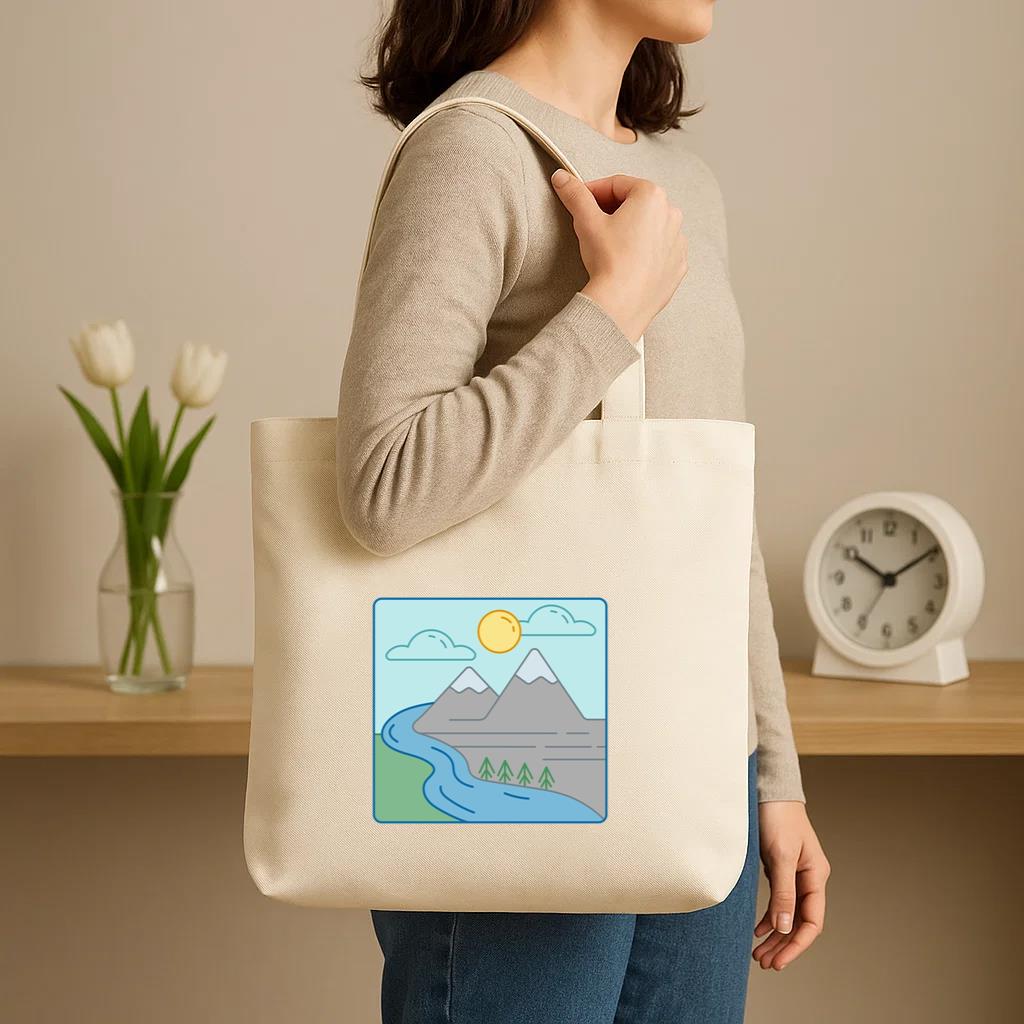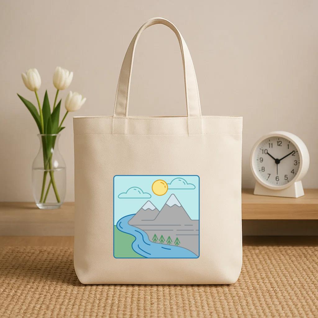 Chic, durable, and reusable , this Mountains Landscape And River Canvas Tote Bag Canvas Tote Bag is your daily go-to or a thoughtful gift for any occasion.