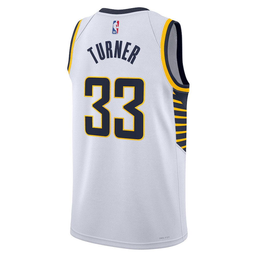 Experience the ultimate in fan gear with this Myles Turner 33 Indiana Pacers unisex Swingman jersey in Association Edition white. Crafted from 100% polyester, this lightweight and breathable fabric ensures maximum comfort whether you’re cheering at the game, training on the court, or wearing it casually. The classic fit offers a clean design that pairs effortlessly with jeans, shorts, or athletic wear. Perfect for basketball enthusiasts, this adult jersey features the iconic player number 33 and team details for authentic style. Available in sizes S to 3XL, it’s durable for everyday use and helps keep you cool during activities. Note: This is a generic sports apparel item, not affiliated with any professional teams or leagues.