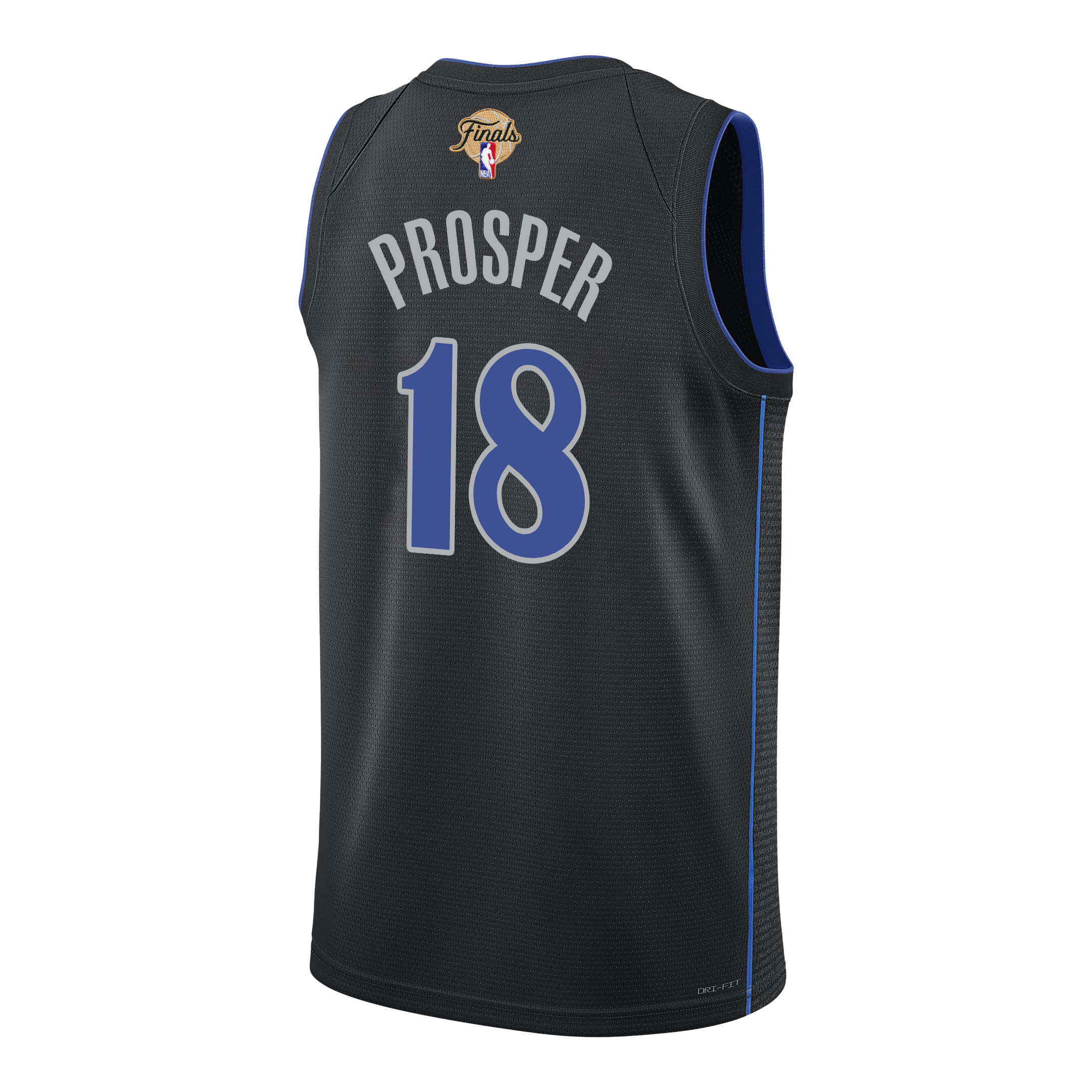 The Olivier-Maxence Prosper 18 Dallas Mavericks 2024 Finals Patch Swingman Jersey in City Edition Black is a lightweight, breathable sports jersey perfect for fans and athletes. Crafted from 100% polyester, it offers superior comfort, moisture-wicking performance, and durability for training sessions, casual wear, or game-day outfits. The classic fit ensures easy layering and styling versatility. Featuring authentic team details like the Finals patch, player name and number 18, this unisex adult jersey is available in sizes S-3XL. Ideal for basketball enthusiasts seeking high-quality fan apparel that’s new and ready to wear.