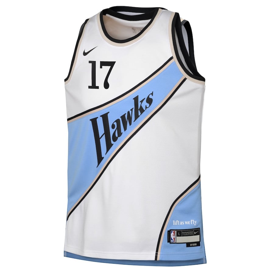 Show your support for Onyeka Okongwu and the Atlanta Hawks with this 2024/25 Swingman Player Youth Jersey in City Edition White. Crafted from 100% lightweight polyester fabric, it offers superior breathability and comfort, keeping young fans cool during games, practices, or casual wear. The classic fit ensures easy movement and a clean design that pairs perfectly with any outfit. Ideal for basketball enthusiasts, training sessions, or everyday fan gear. Features the iconic number 17 and team details for authentic style. Available in youth sizes S to 3XL. New condition, multicolor accents on white base. Note: This is a generic sports apparel item not affiliated with any professional teams or leagues.