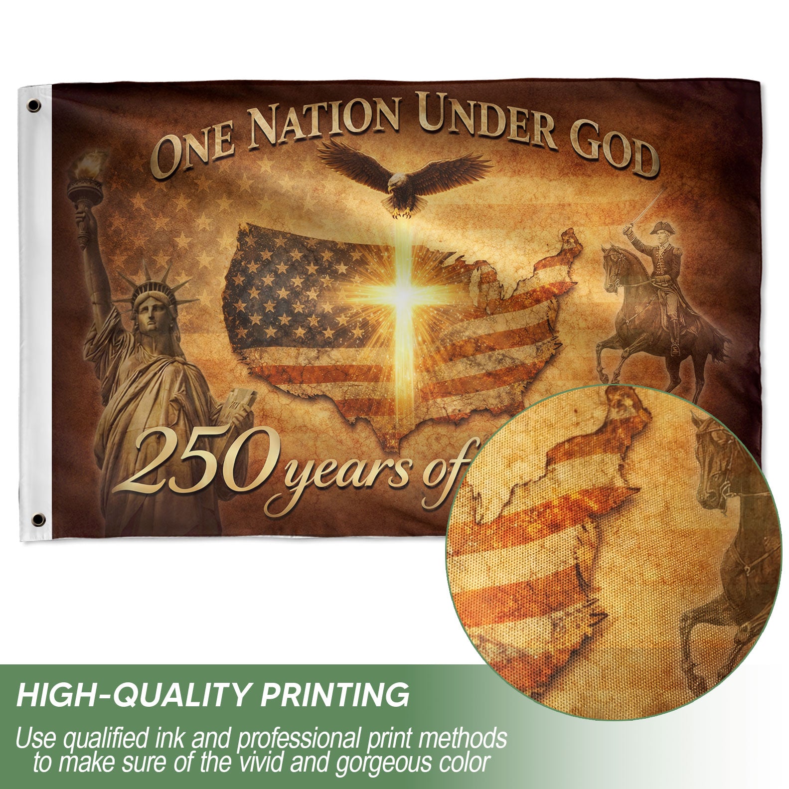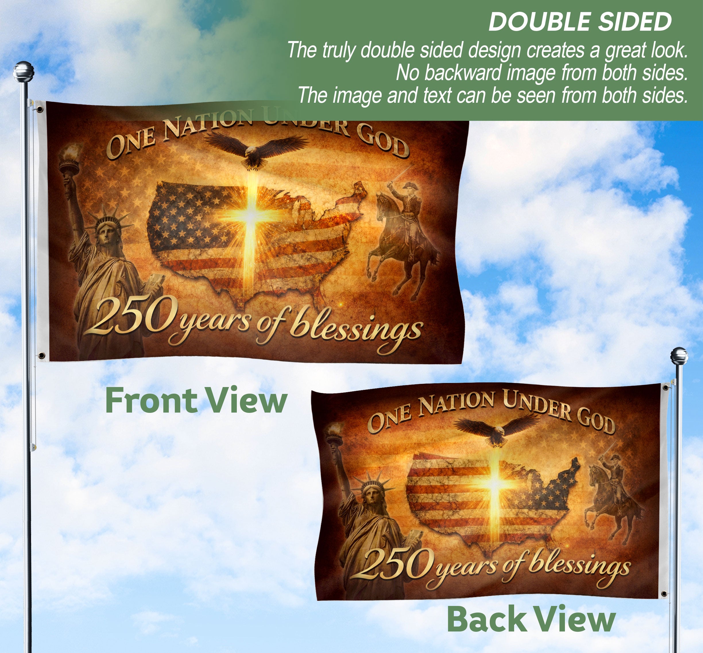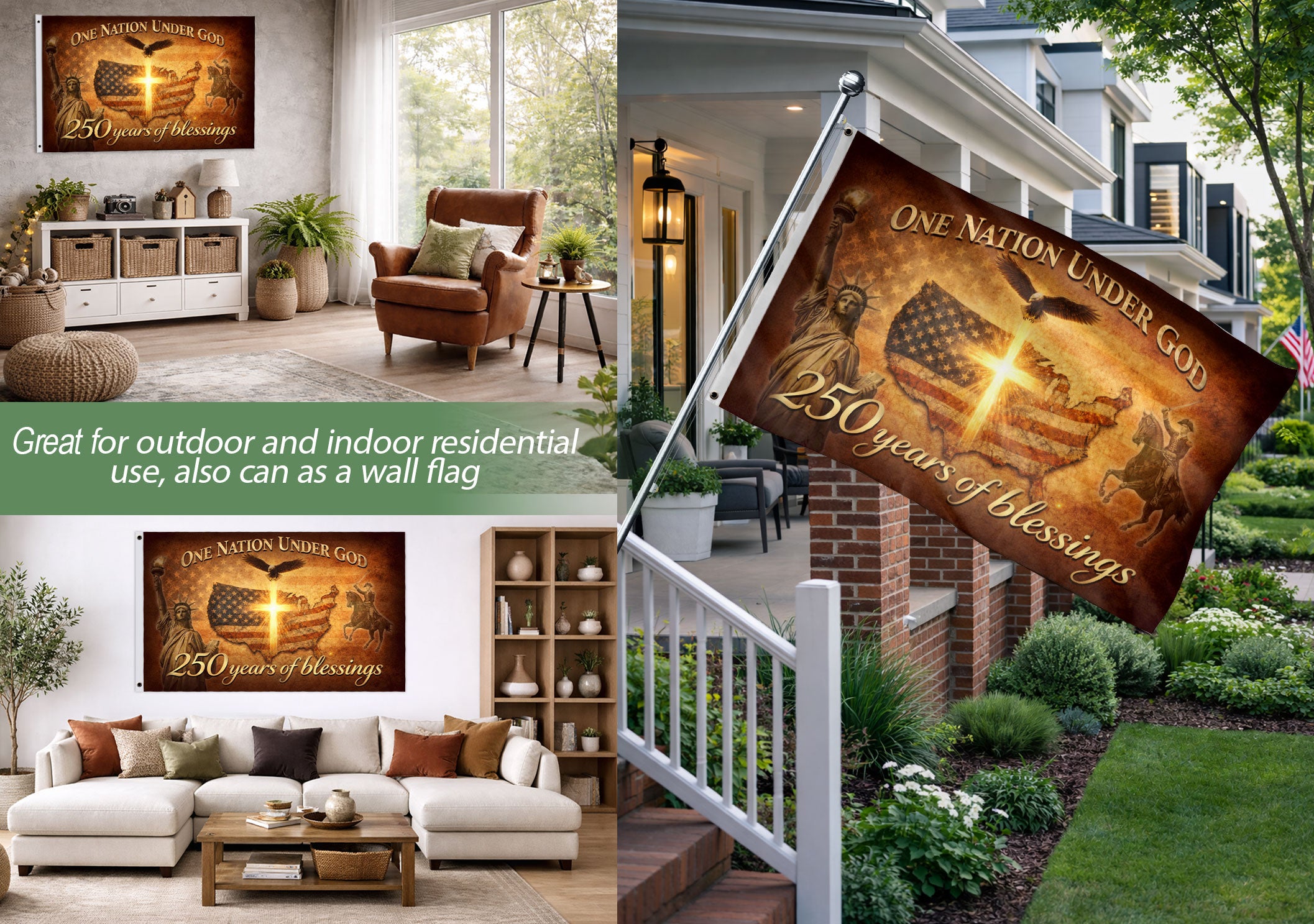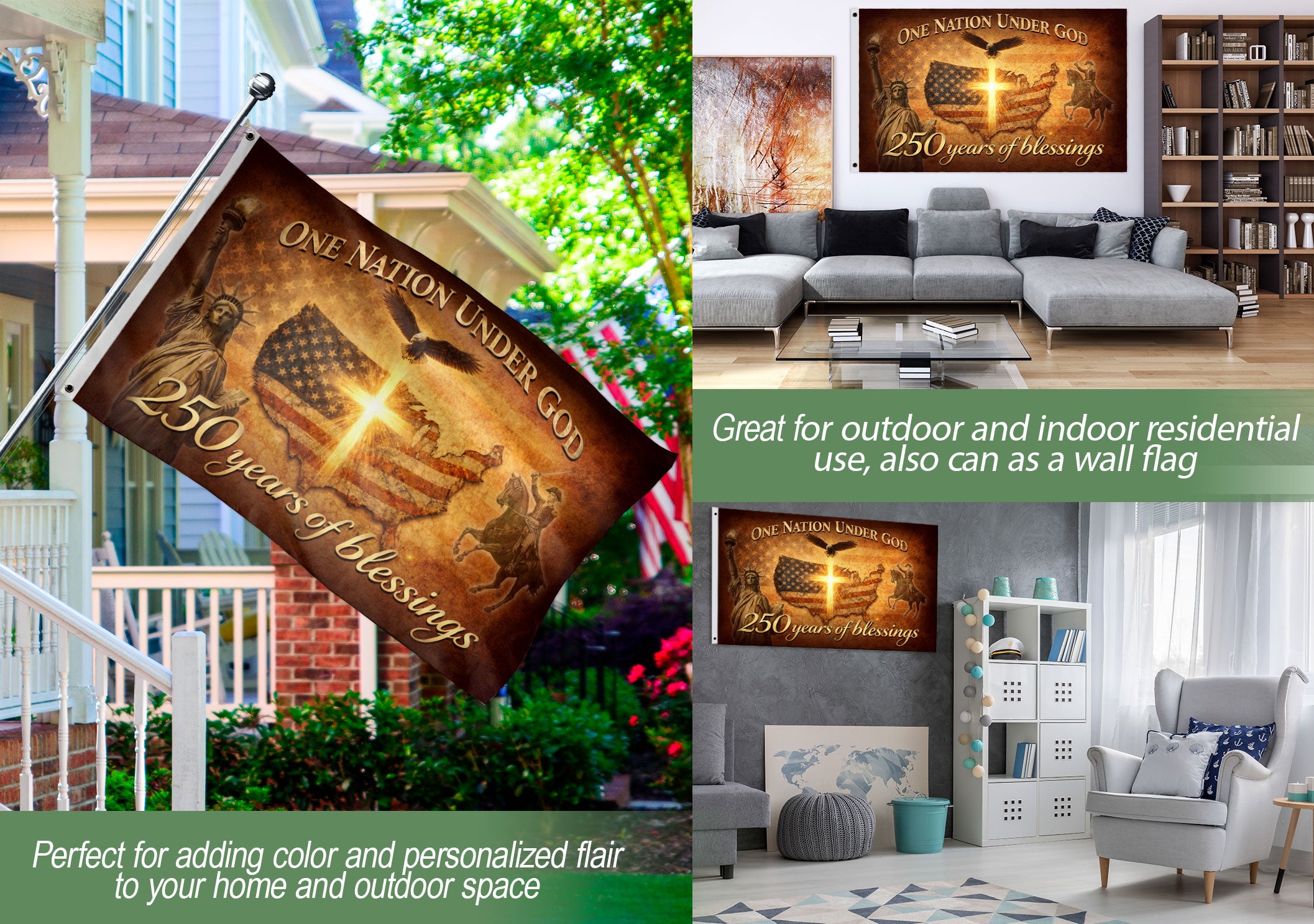 Celebrate faith and freedom with this Patriotic Christian House Flag. It features a radiant cross overlaying the USA map, surrounded by powerful American symbols like stars and stripes. This meaningful design blends Christian heritage with national pride, making it an ideal decoration for your home porch or yard. Crafted for durability and vibrant outdoor display, it’s perfect for holidays, Independence Day, or everyday expression of your beliefs and patriotism. Double-sided printing ensures visibility from both sides, with weather-resistant fabric suitable for porches, gardens, or flagpoles.