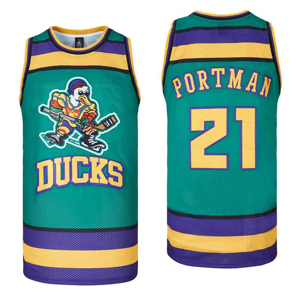 The Portman 21 Mighty Ducks Swingman Jersey in green multicolor is a lightweight, breathable sports jersey perfect for fans, athletes, and casual wear. Crafted from 100% polyester, this unisex adult jersey offers superior comfort and durability, wicking away moisture to keep you cool during workouts, training sessions, or everyday activities. Its classic fit and clean design make it versatile for pairing with shorts, jeans, or athletic gear. Available in sizes S to 3XL, this new condition jersey captures fan-inspired style without official team affiliation. Ideal for basketball enthusiasts, movie fans, or anyone seeking high-quality athletic apparel that combines performance with a nostalgic Mighty Ducks vibe.